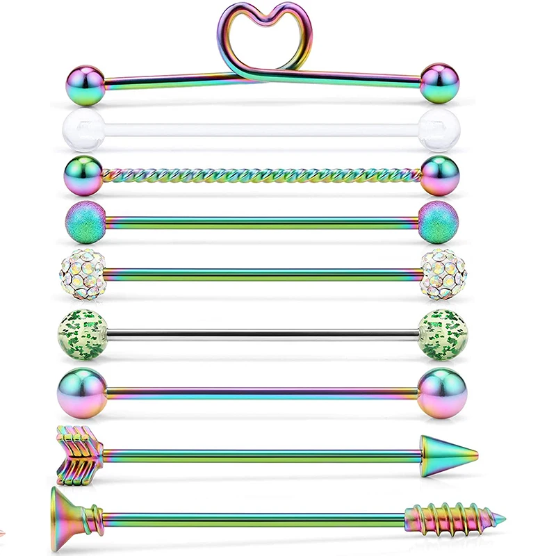 В том числе 9 шт промышленных пирсинга Серьги, смешанные стили дают вам Mutiply Wearring наряд, разумные цены на ювелирные изделия тела, заслуживает покупки.