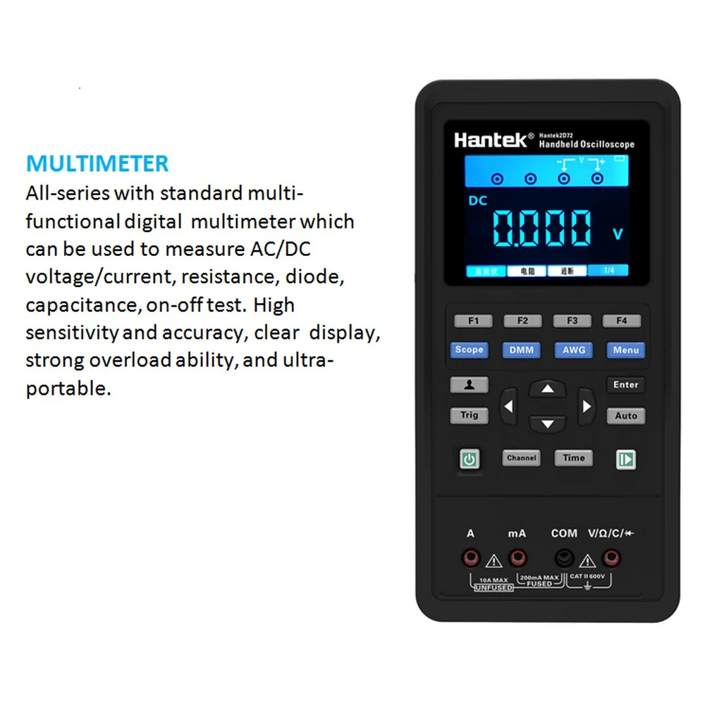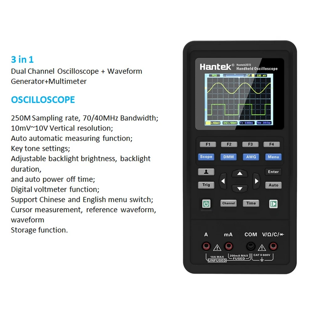 Hantek 2D72 2D42 Ручной цифровой осциллограф генератор сигналов мультиметр USB 70MHz 2CH + DMM + AWG 2,8 inch LCD 3in 1 тест-метр