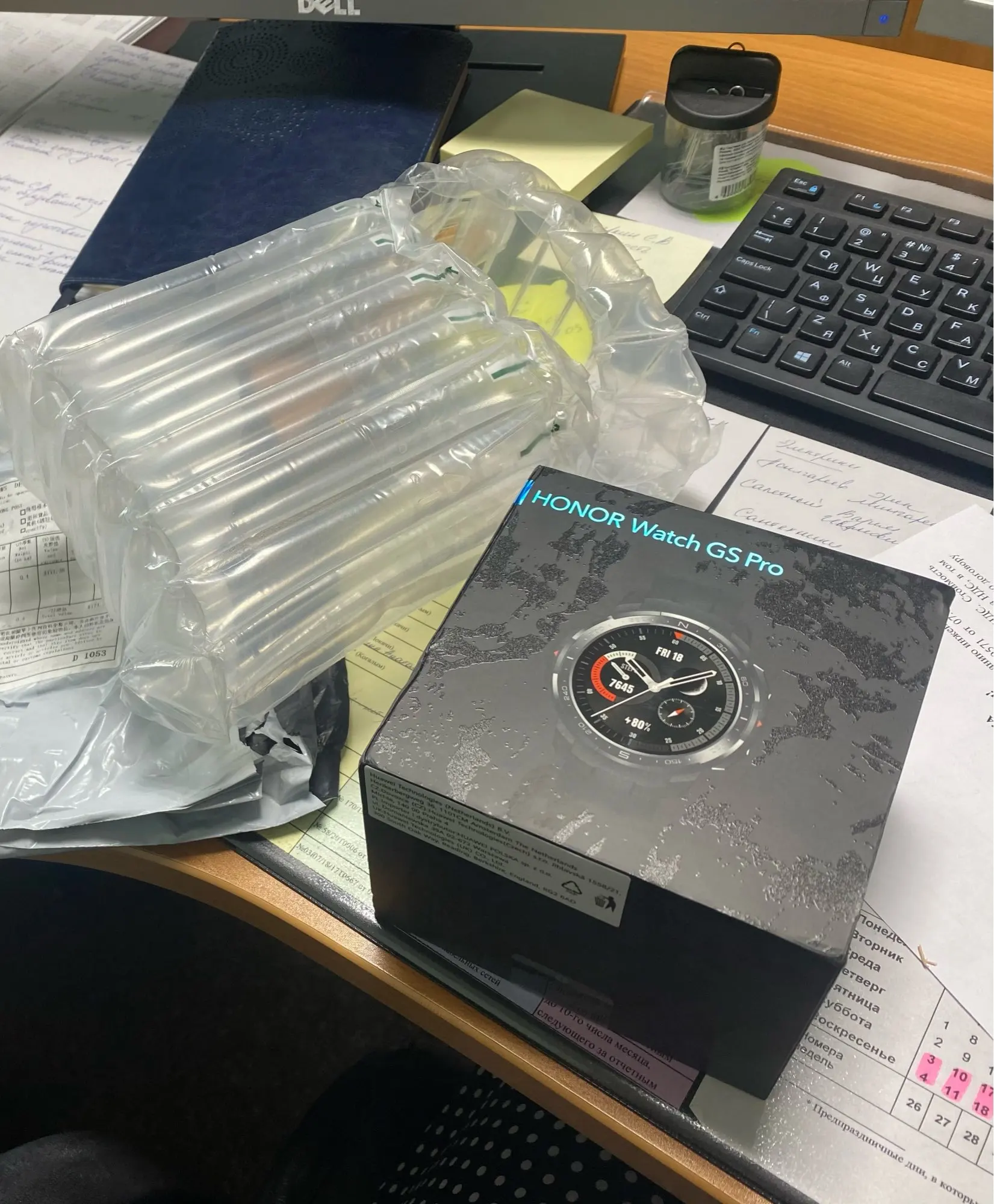 Доставка была 3 недели, несмотря на Плюсовую доставку. Другие товары, заказанные 11.11 - пришли за 12 дней. Но это, видимо, уже проблема почты России из-за большого количества товаров на "черную пятницу", на всех этапах посылка сильно задерживалась. Сравнительные размеры часов - на фото. Часы нравятся всем, основное достоинство, естественно, аккумулятор и экран. Функционала, лично мне - за глаза. Единственный недостаток - чтоб достать трек из часов необходимы танцы с бубнами. Хуавей давно обещает решить этот вопрос, надеюсь, когда-нибудь, все-таки решат.