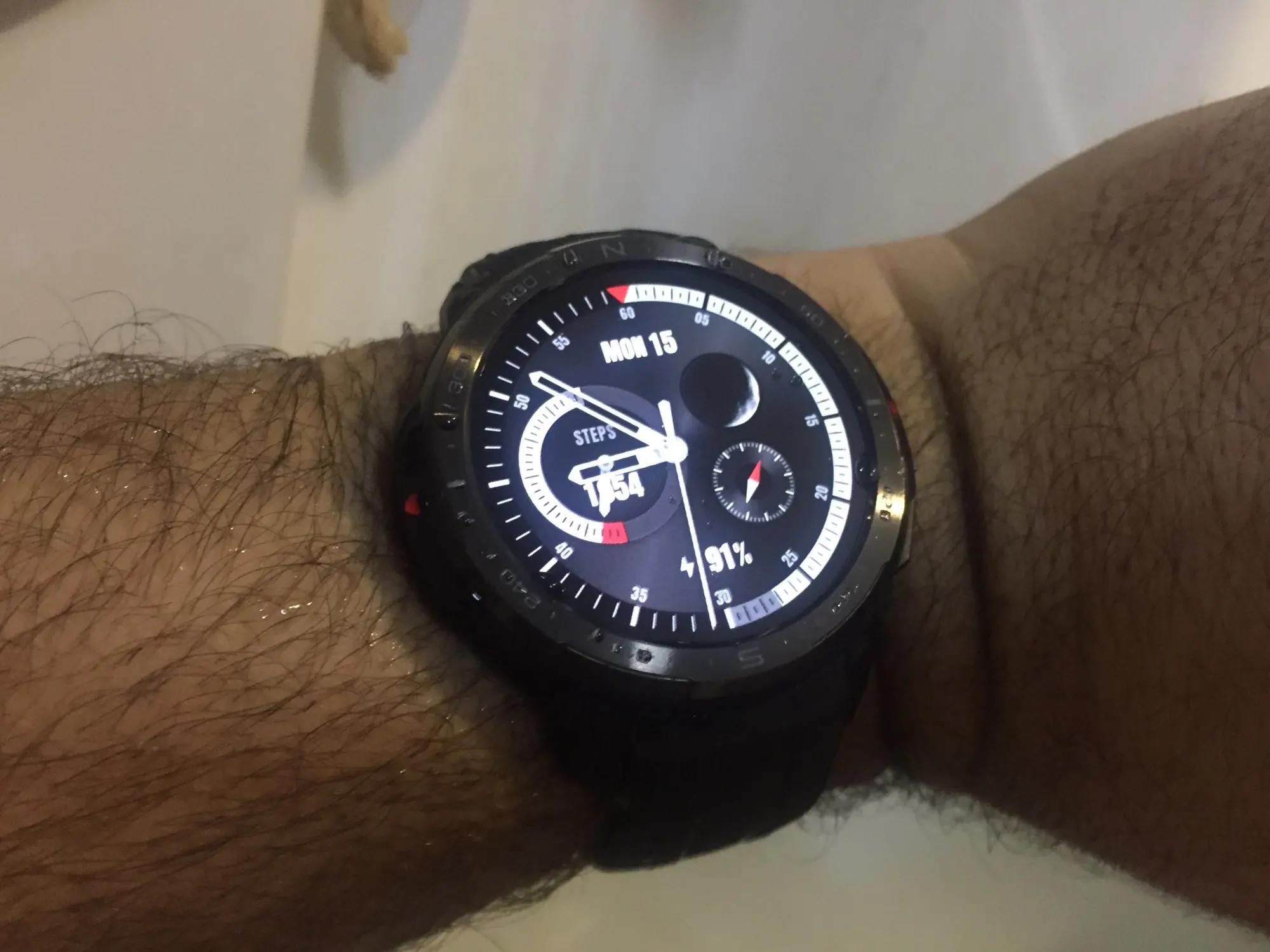 брал со скидкой за 12 тысяч, это просто огонь! сборка отличная, ремешек приятный на ощупь, плотный, очень удобно, экран очень красивый (а чего ещё ожидать от амоледа?))) с коробки 83%заряда, сразу обновились, компас барометр gps всё работает, шустро спутники ищет даже возле окна в квартире. очень доволен, сообщения с ватсап вполне удобно читать. рекомендую!!! единственное после вскрытия коробки заметил что на стекле нет наклейки... у меня не широкая рука - но сели вполне комфортно