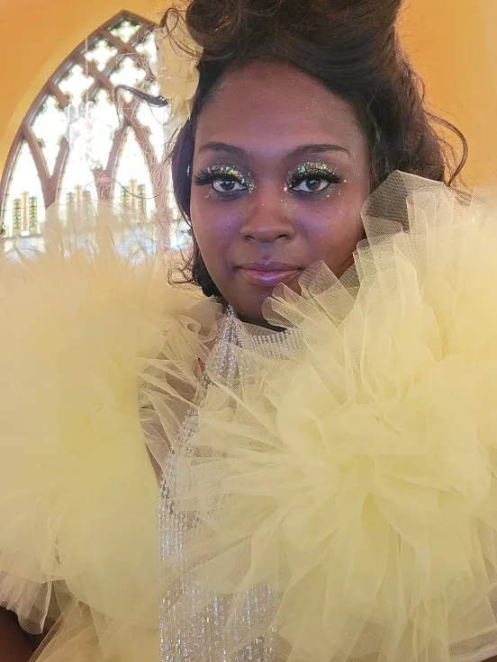 Шикарное желтое дополнительное фатиновое платье для беременных женщ...