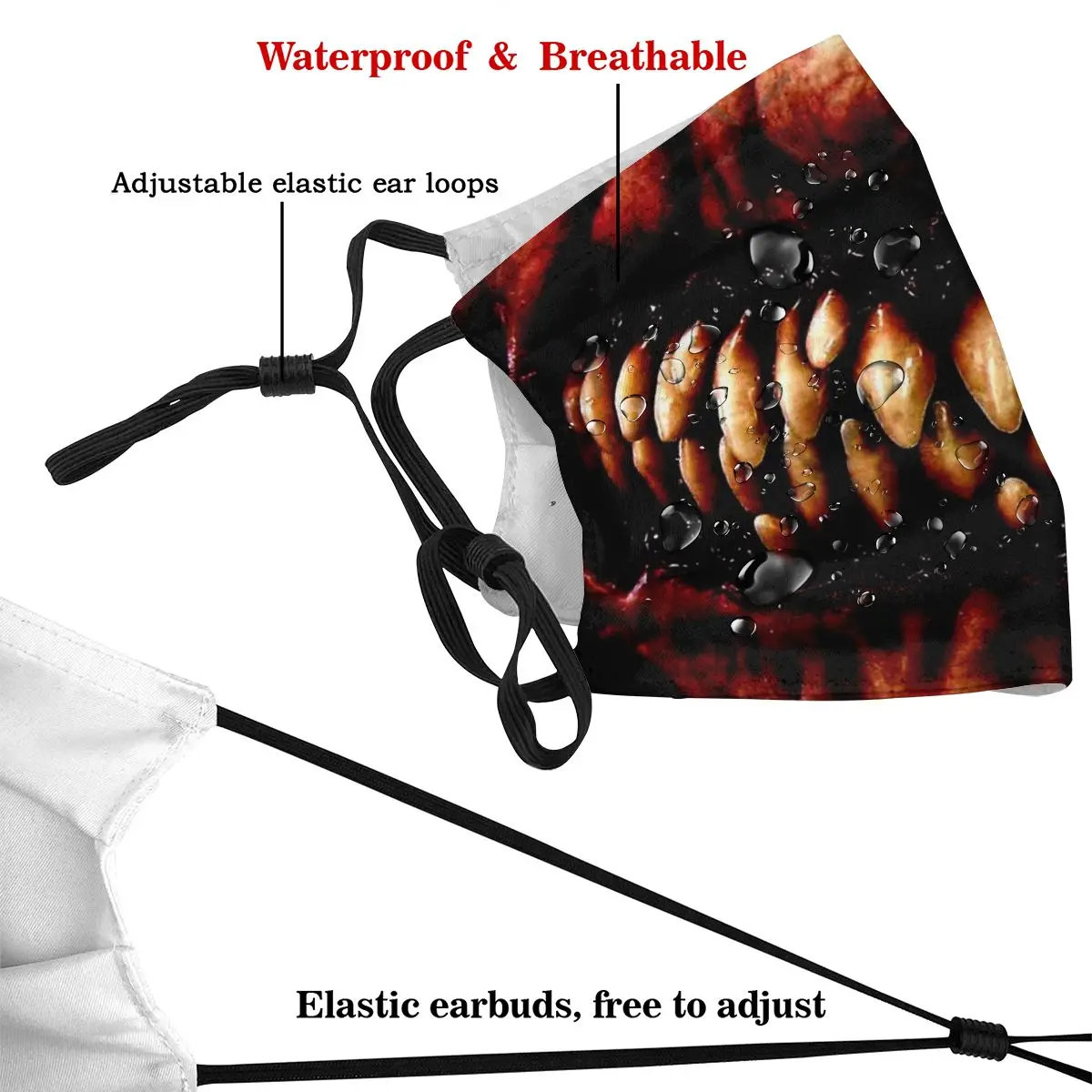 1. С внутренним карманом, который может удерживать фильтр;5-слойный фильтр с активированным углем;М-образный зажим для носа. (Регулируемый)