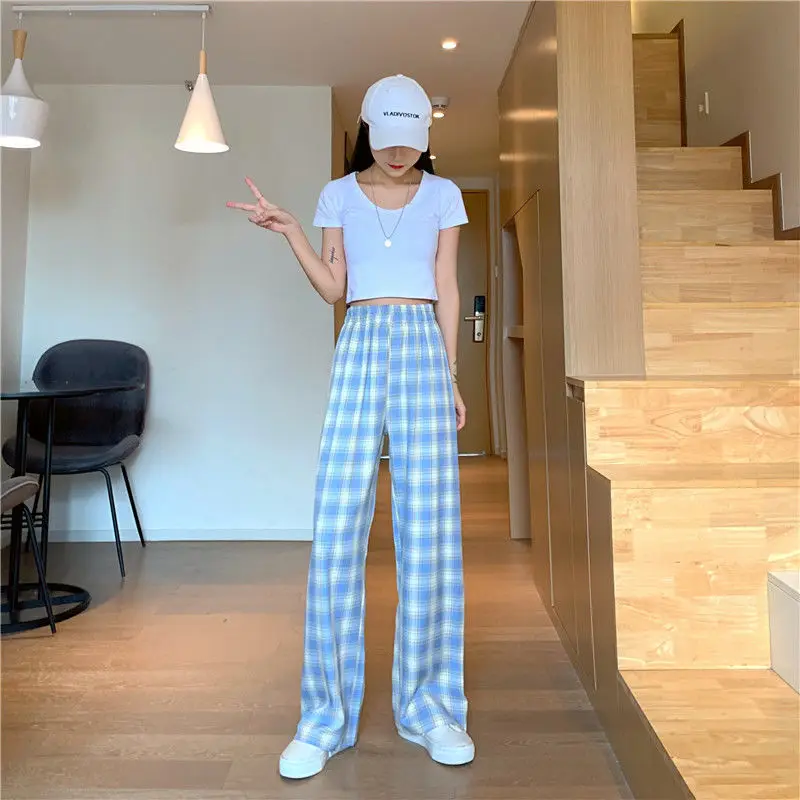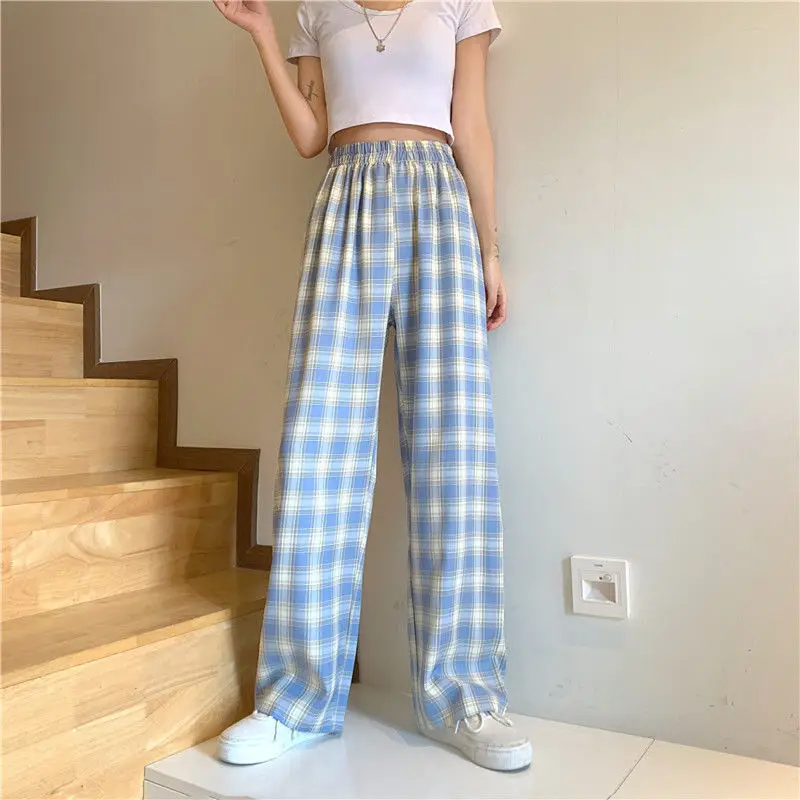 Женские брюки в клетку, летние аниме брюки с высокой талией, новинк...
