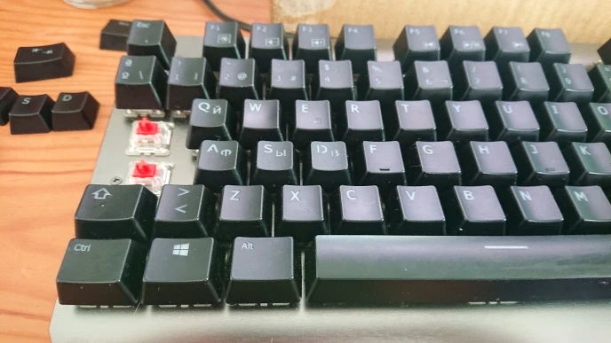 Пробел нестандартный, не подходит для Logitech G710+. Клавиши садяться очень плотно, тяжело снимаются. В остальном всё хорошо