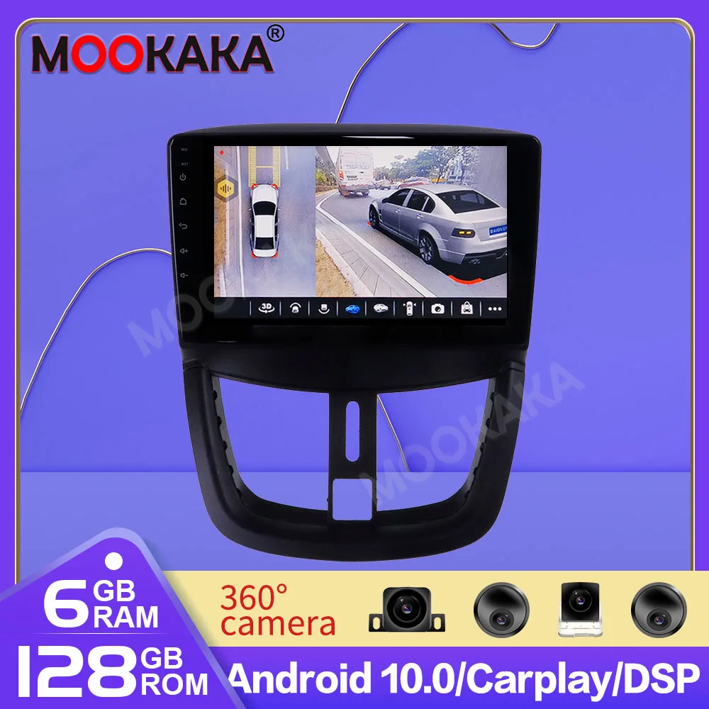Автомобильный мультимедийный плеер Android 10, 128G, GPS для Peugeot 207, 2006, 2007, 2008 -2015, GPS-навигация, видеоплеер с поддержкой Carplay
