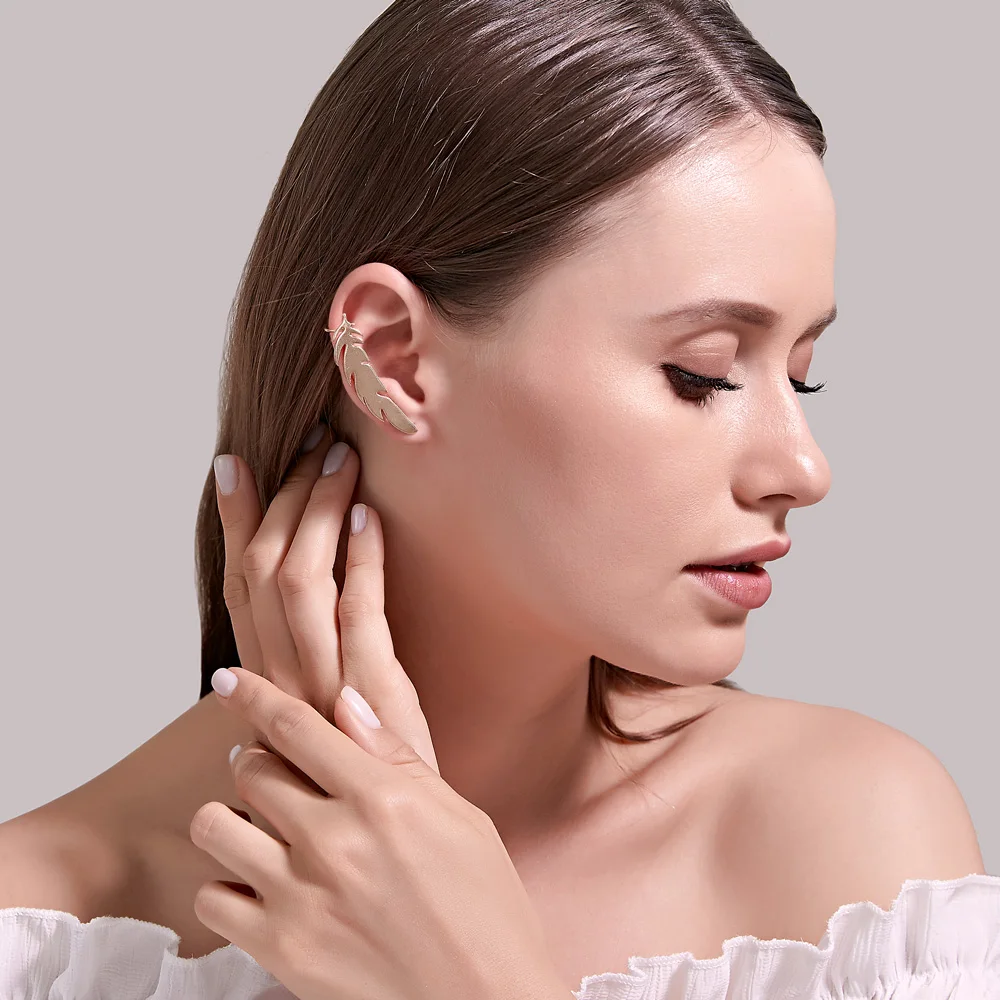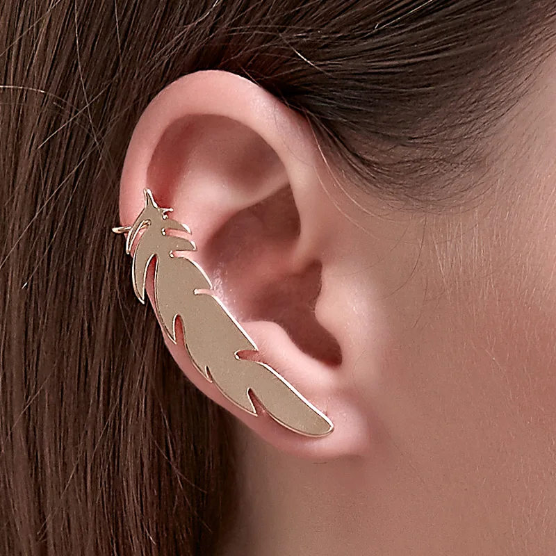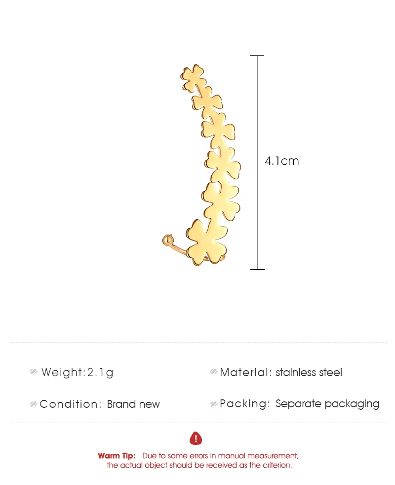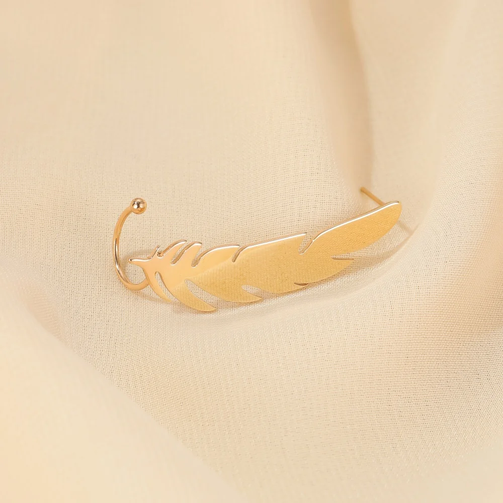 Простые серьги-Клипсы из нержавеющей стали с одним сердцем, четырехлистным клевером, звездами, перьями, цветком, золотым и серебряным покрытием