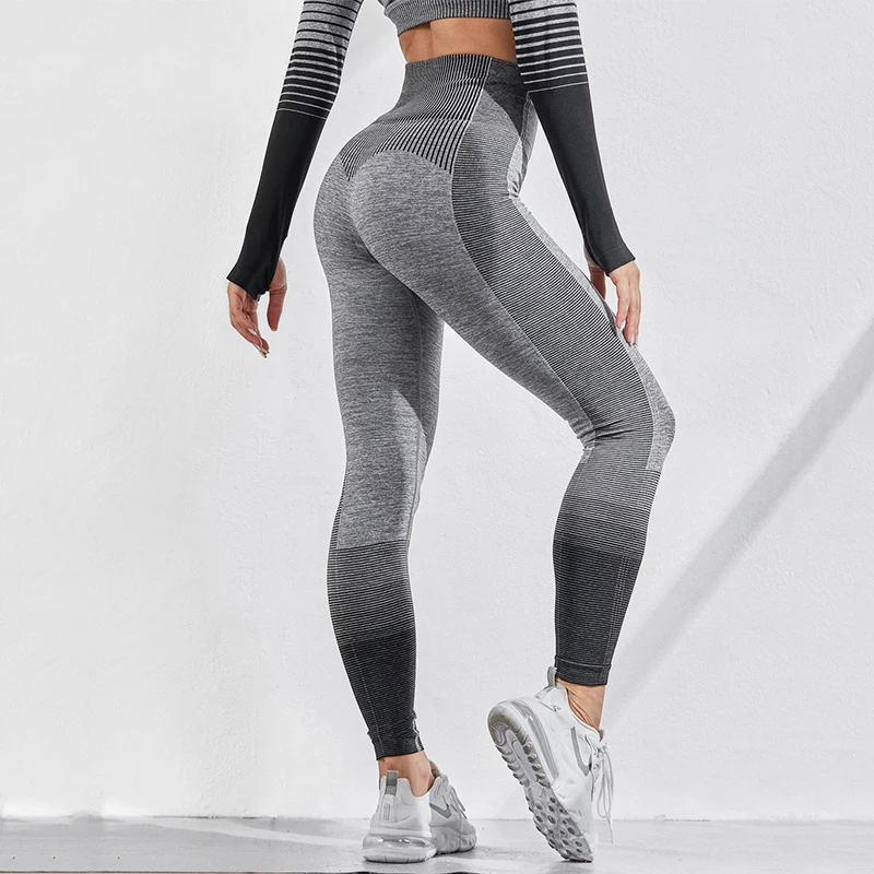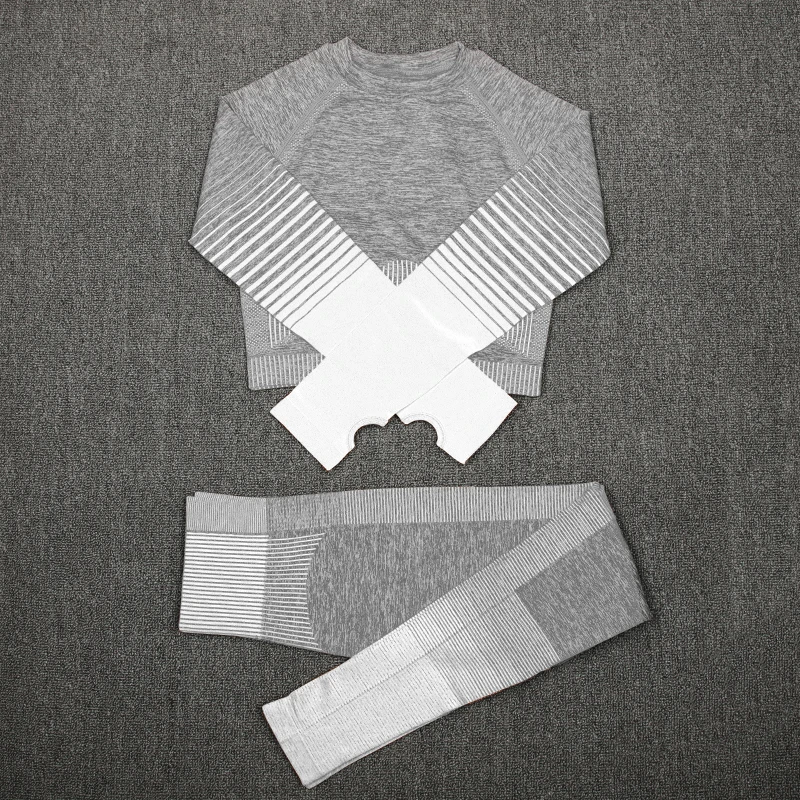 Комплект Для Йоги Женский, облегающий, полосатый, спортивный костюм...