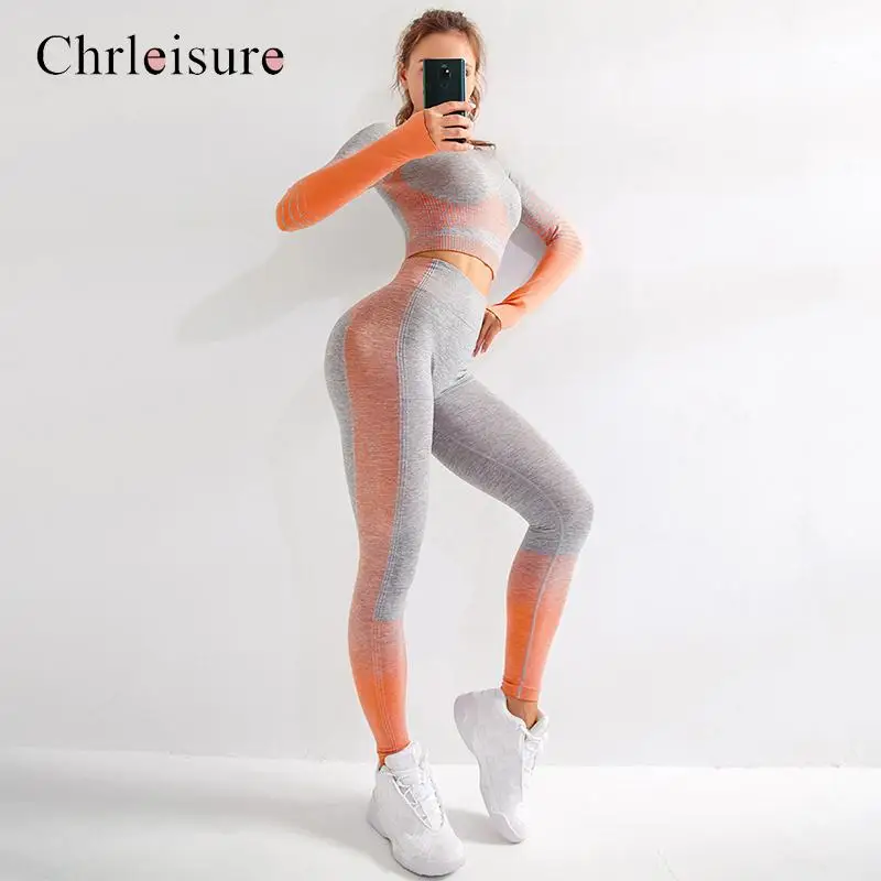 Комплект из двух предметов: Топ и леггинсы с пуш-ап и длинными рукавами