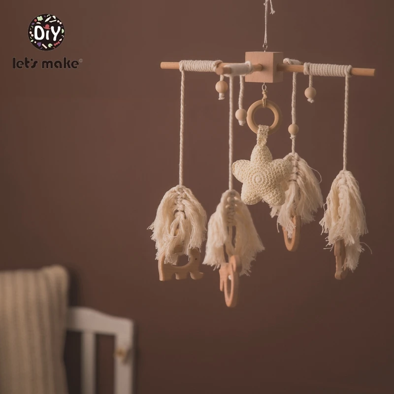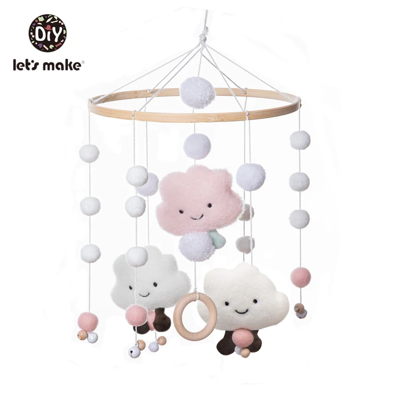 Детская Мобильная игрушка-колокольчик Let's Make дропшиппинг, Музыкальная Коробка 0-12 месяцев, облачная хлопковая карусель для проекции детских кроватей