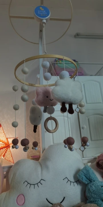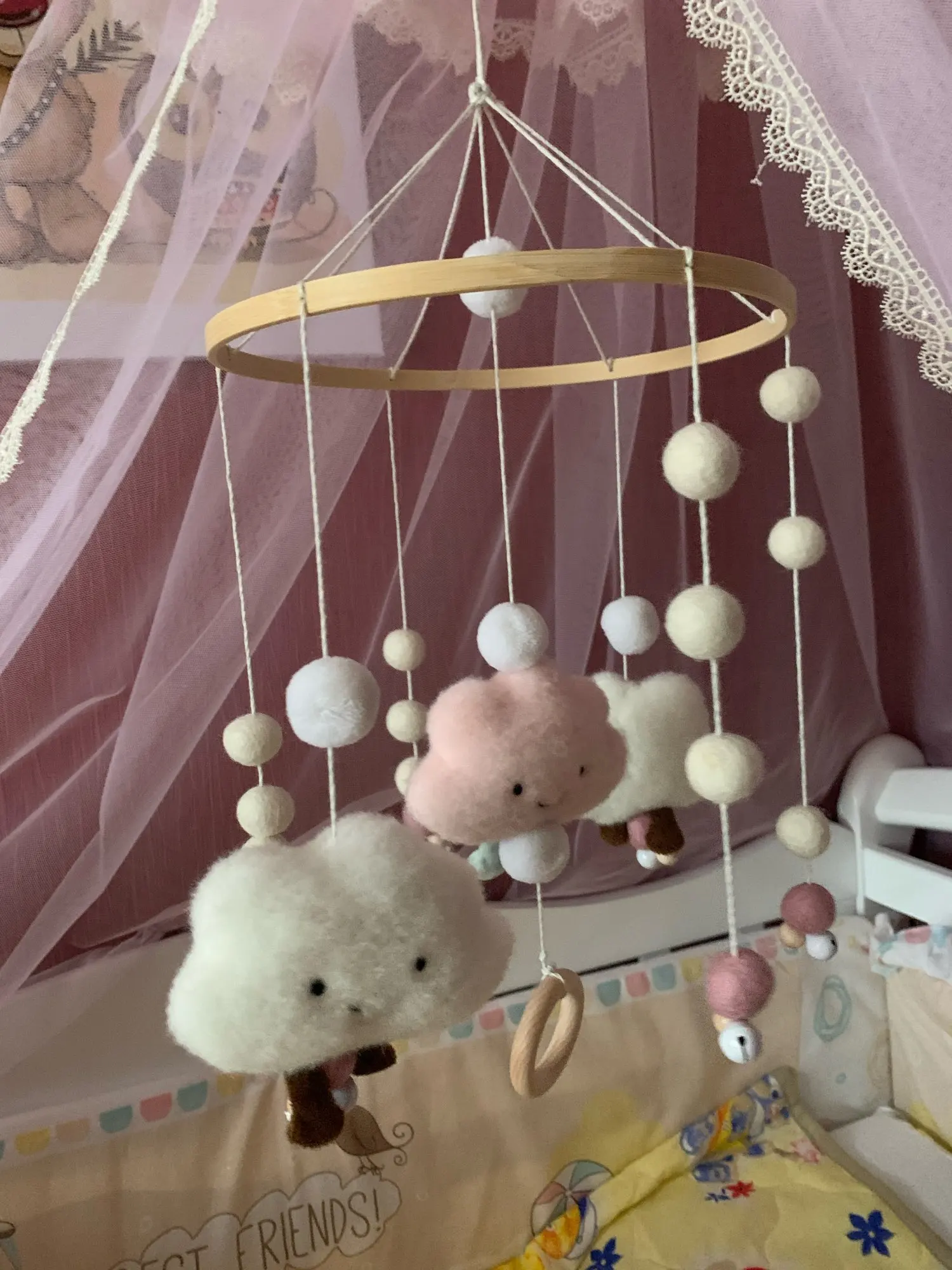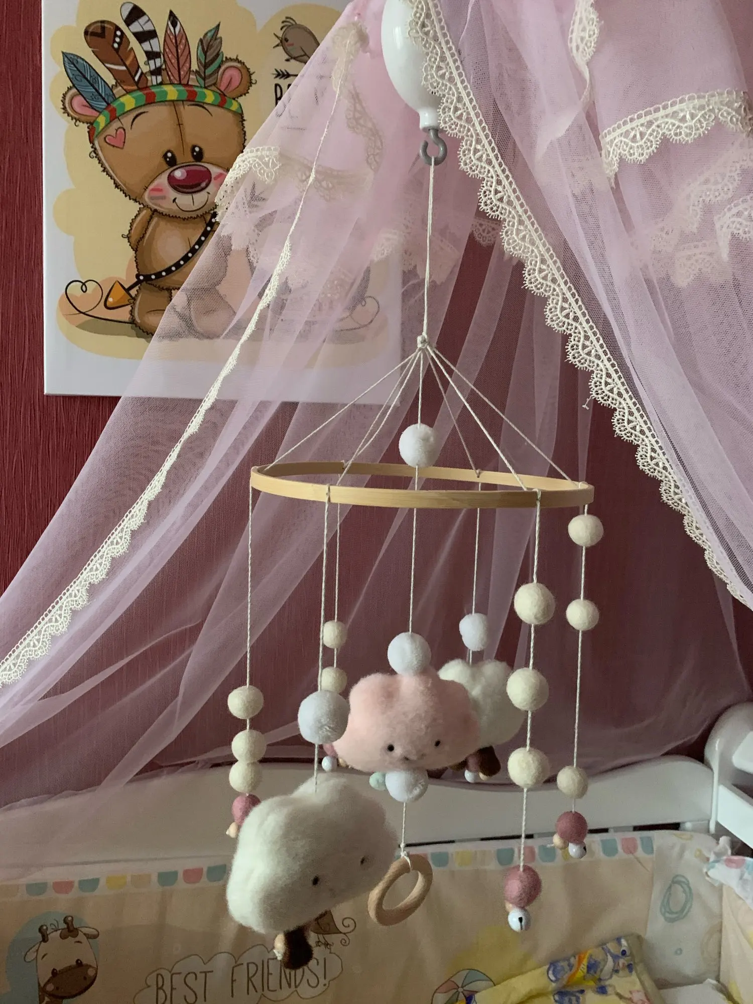 Очень милый мобиль! Приятная мелодия и воздушные облачка. Всё супер