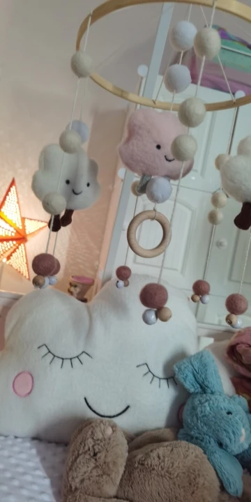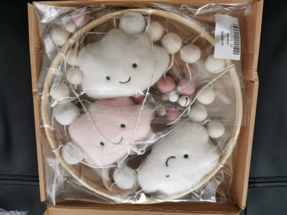 Мобиль пришёл за 9 дней в ближайшую пятерочку (Мск). В целом красивый, облачки и шарики не белоснежные, а скорее кремовые. Заходите ко мне в инст @panochka_yanochka, много покупаю для себя и будущей малышки на али и делаю подробные обзоры)