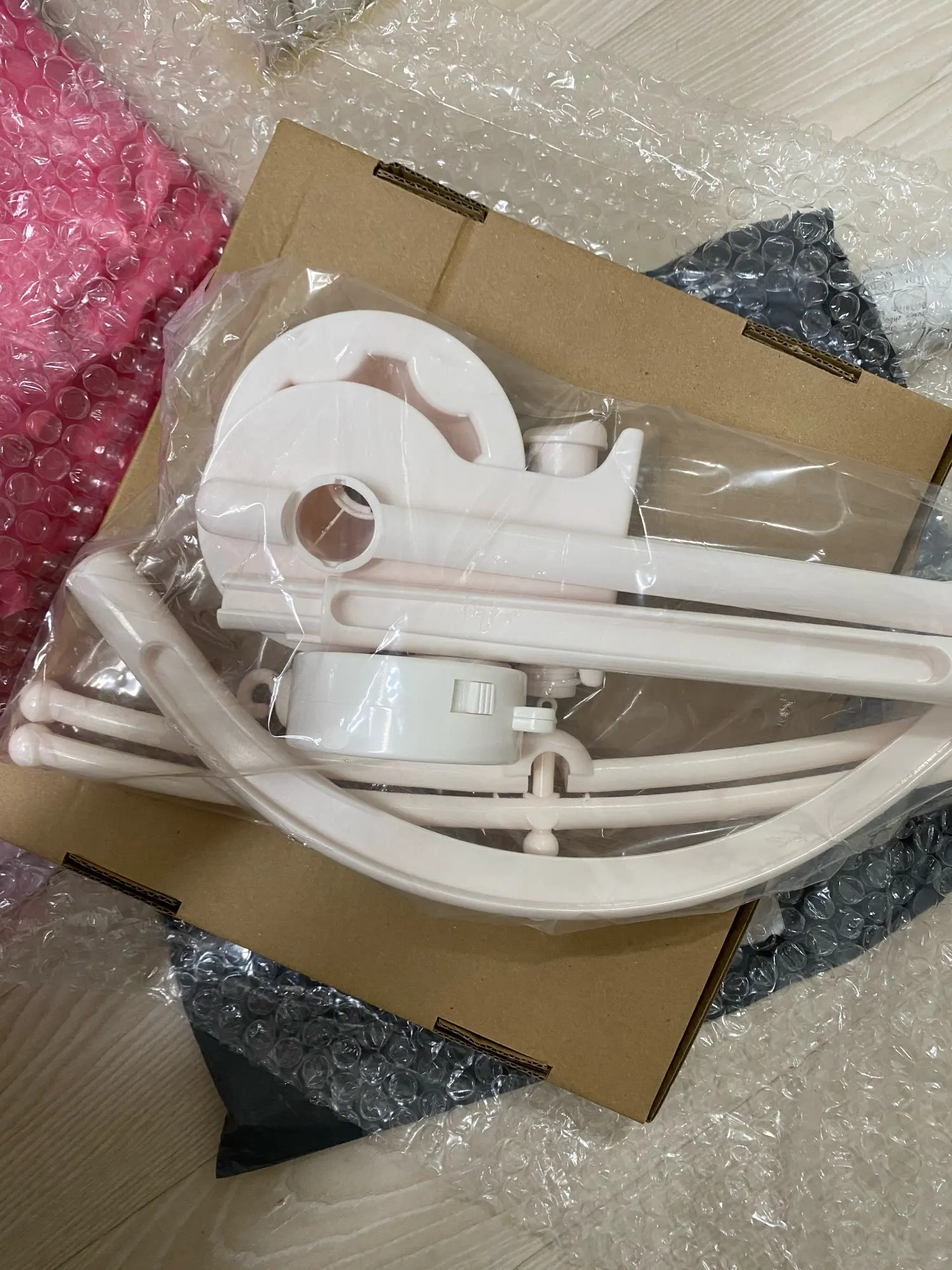 18 набор идёт вместе с держателем и музыкальной/вращающейся частью. Музыка и вращение работают с помощью заводного механизма (без батареек), одного завода хватает на 3-4 минуты вращения под музыку. Цвет держателя не белый, а слегка розовый