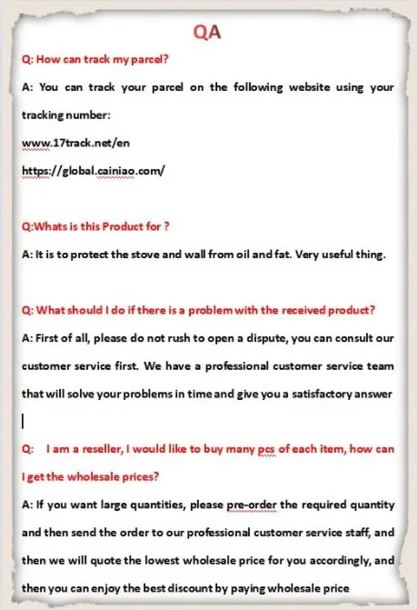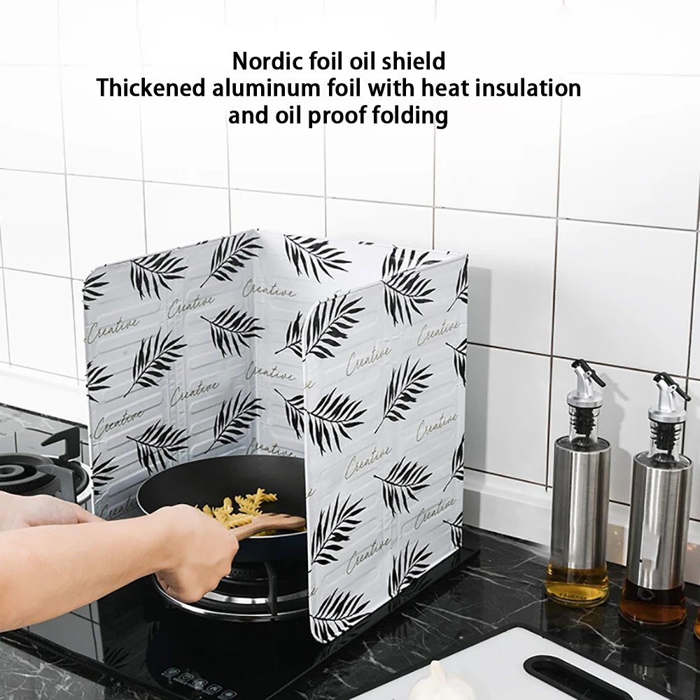 Защита от брызг масла изготовлена из высококачественного материала из алюминиевой фольги, точка расплава которого составляет около 660 градусов Цельсия. Таким образом, это может эффективно предотвратить брызги масла на плиту или стену во время процесса приготовления.