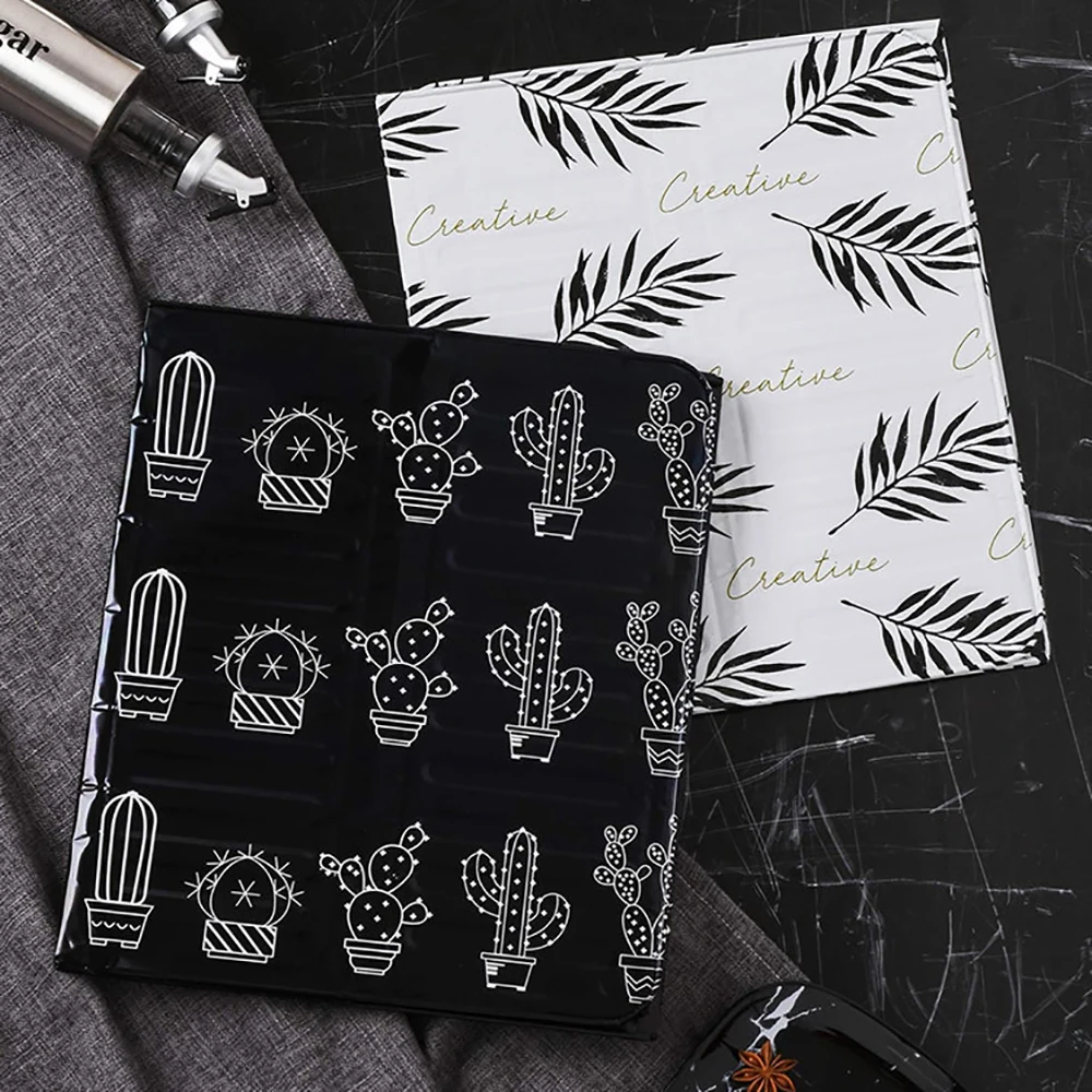 Защита от брызг масла отличается красивыми задними и белыми узорами. Вы можете выбрать два типа: милый кактус и Классический рисунок листьев.
