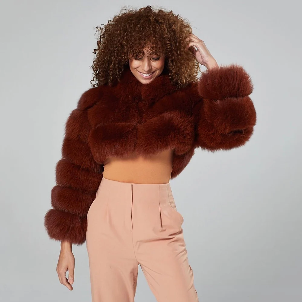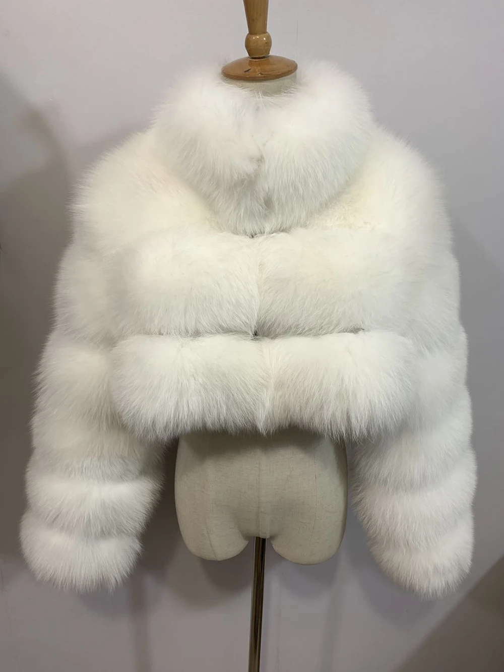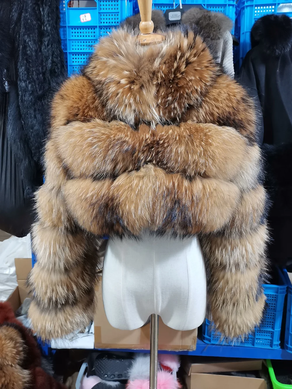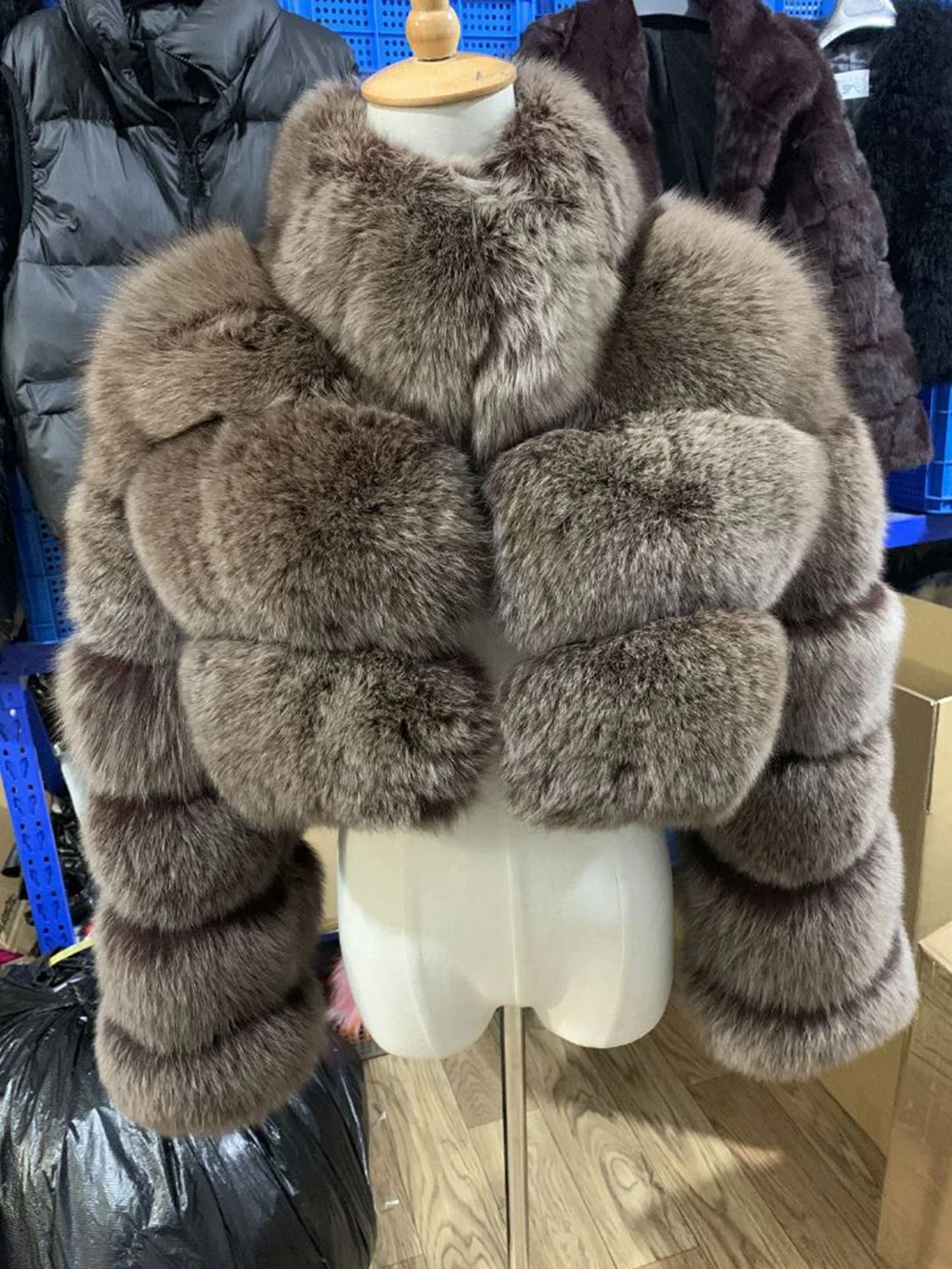 Новый дизайн, женские меховые пальто из натурального Лисьего меха, зимние меховые куртки, короткое модное пальто, пушистое меховое пальто из натурального меха S7841