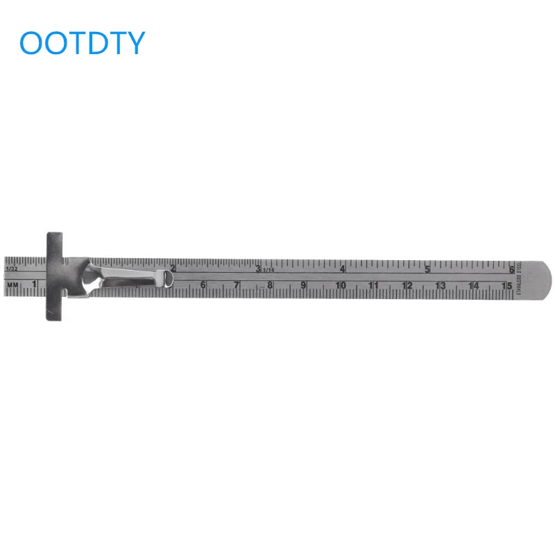 Нержавеющая сталь с выгравированным шагом в 1/16ths, 1/32NDS и мм. Маленькие, удобные и точные измерения. Может использоваться в качестве датчика глубины.