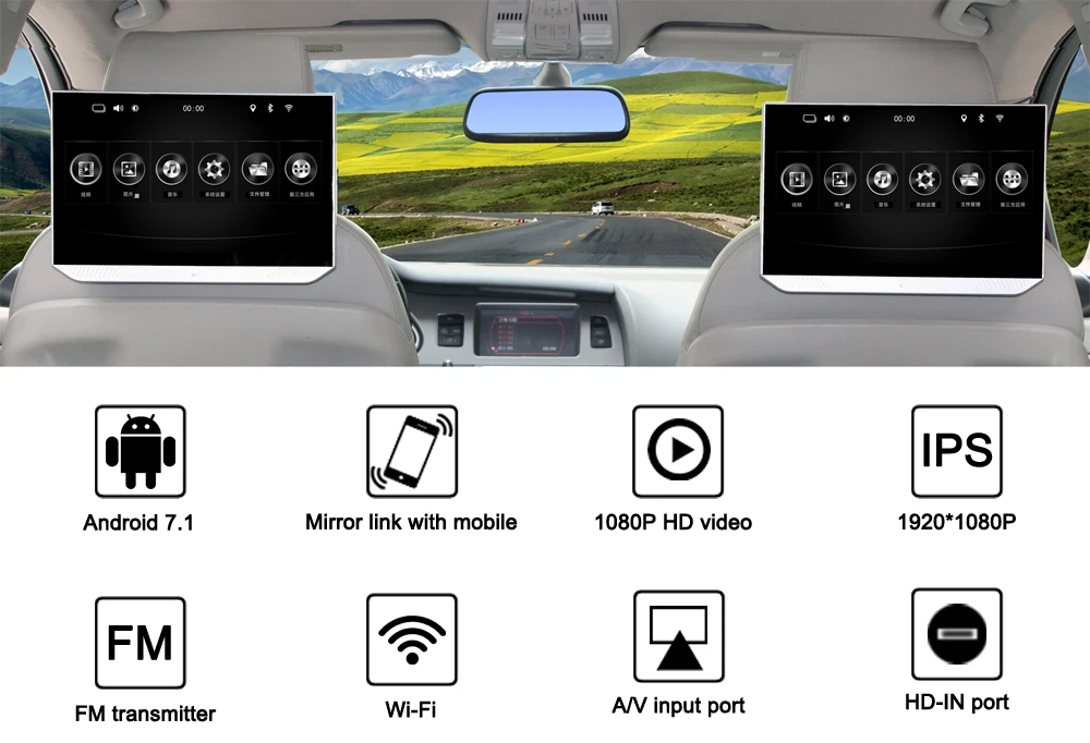 13,3 дюймовый Android 7,1 автомобильный монитор на подголовник WIFI...