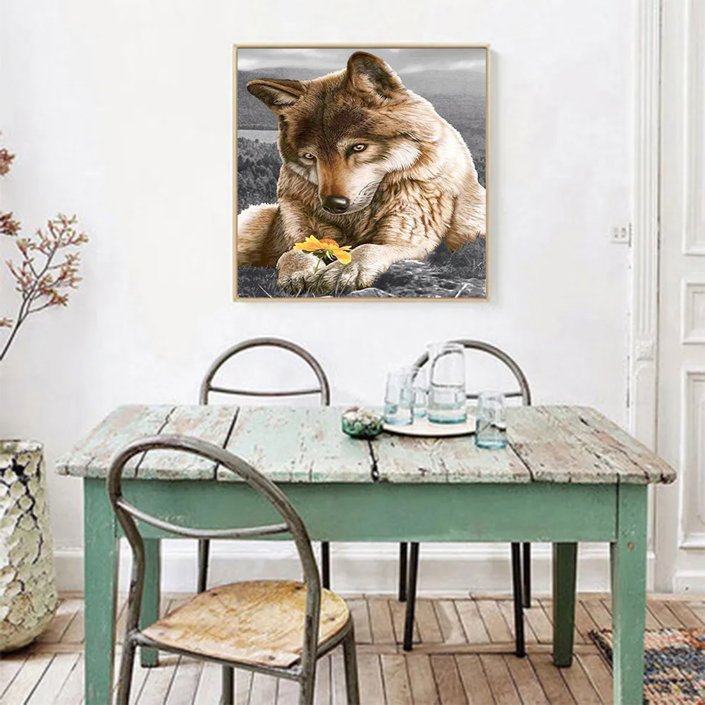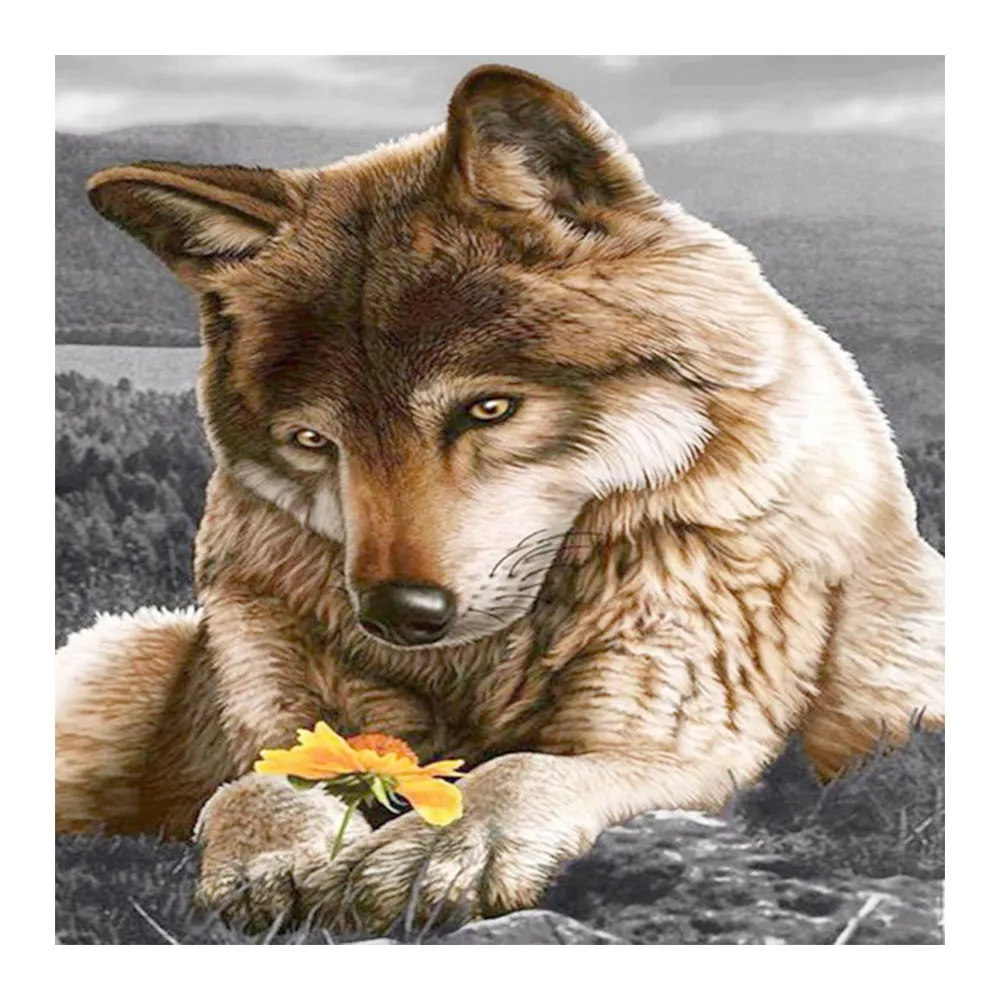 Серый Волк и маленький желтый цветок Алмазная картина животное круглая полная дрель Nouveaute DIY мозаика вышивка 5D Вышивка крестом подарок