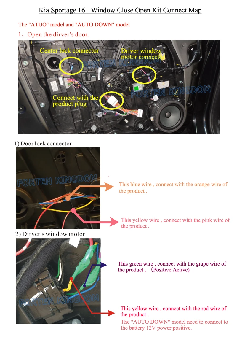 5. Автомобиль с двумя кнопками "AUTO",Необходимо подключить 2 провода. Автомобиль с кнопкой «AUTO DOWN» и «AUTO», необходимо подключить 4 провода.