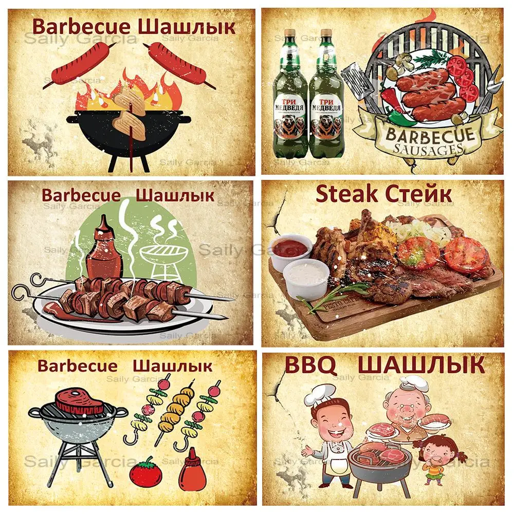 Металлический знак для барбекю, рыбные чипсы, кебаб, кексы, металли...
