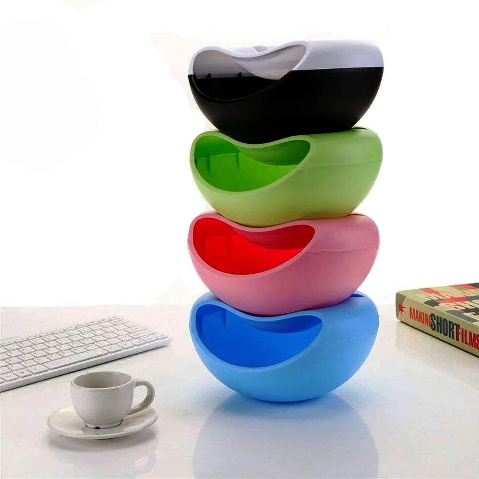 Креативная чаша, двухслойные контейнеры для сухих фруктов, коробка для хранения закусок, семян, стандартная пластина, с держателем для телефона