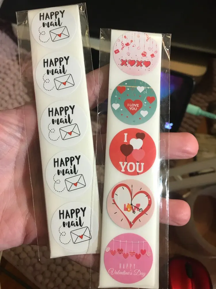 Наклейки были как рекламируются. Милое дополнение к моей счастливой почте. Поставляется как плоская полоса, а не в рулоне.