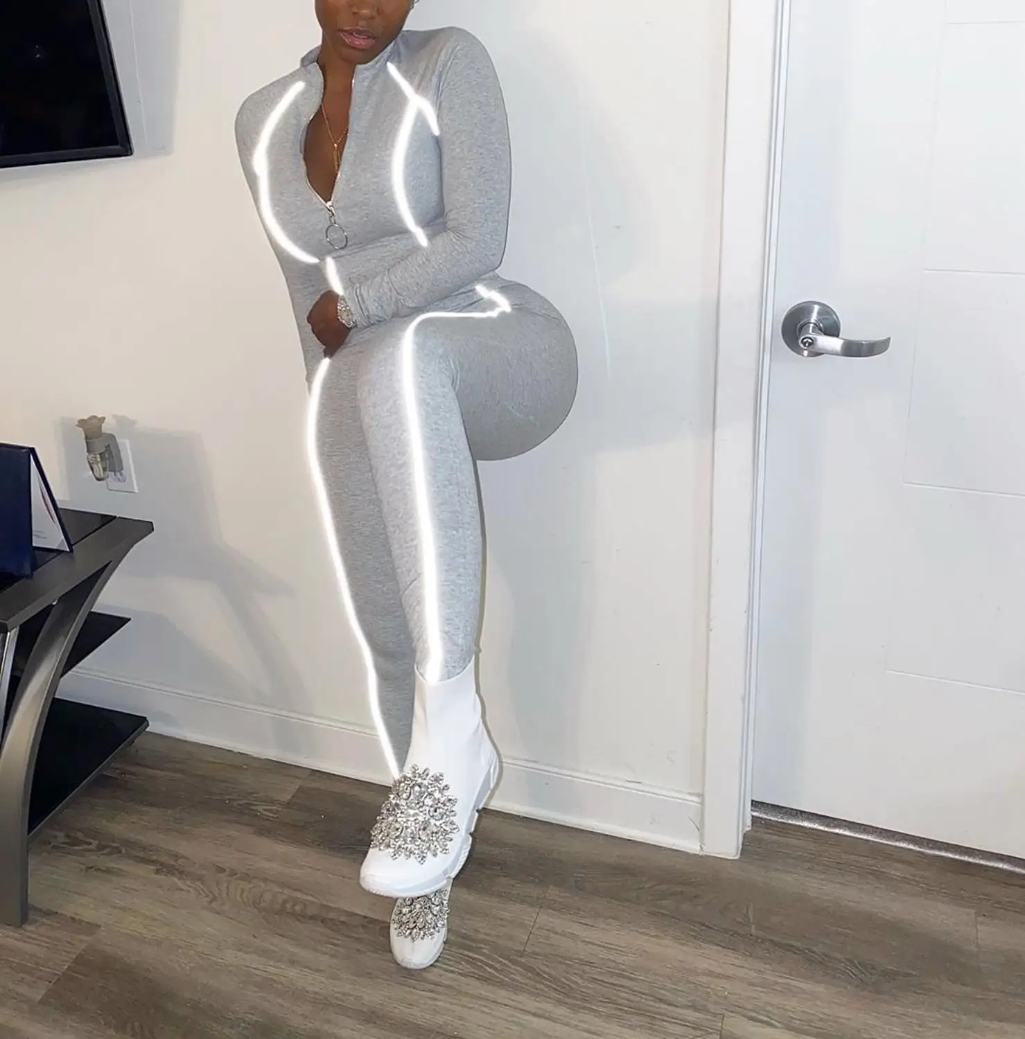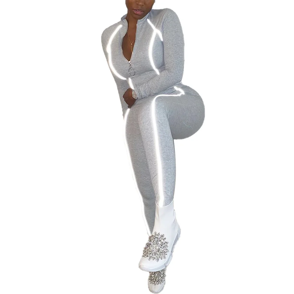 Спортивный костюм в полоску, женская одежда, сексуальная одежда для отдыха, укороченный топ на молнии с длинными рукавами + леггинсы, облегающий комплект из двух предметов для бега, Femme