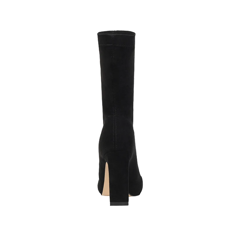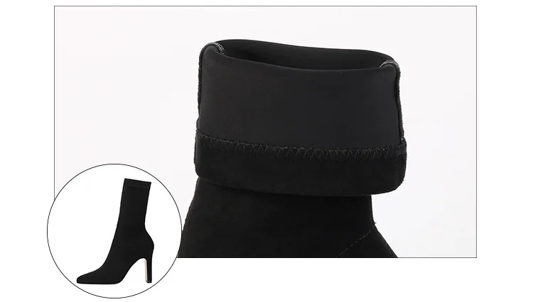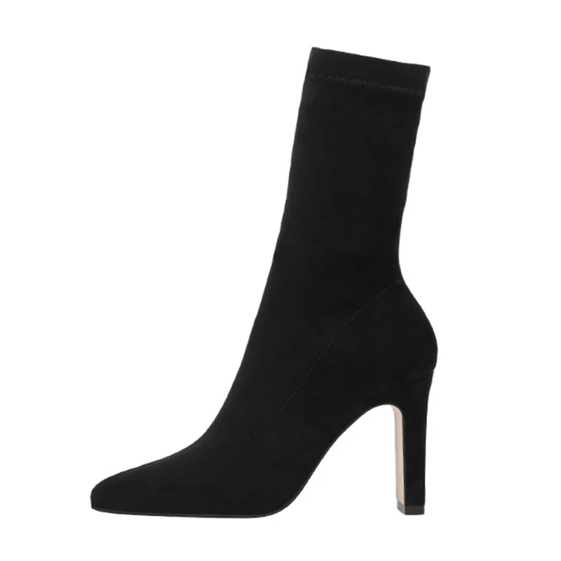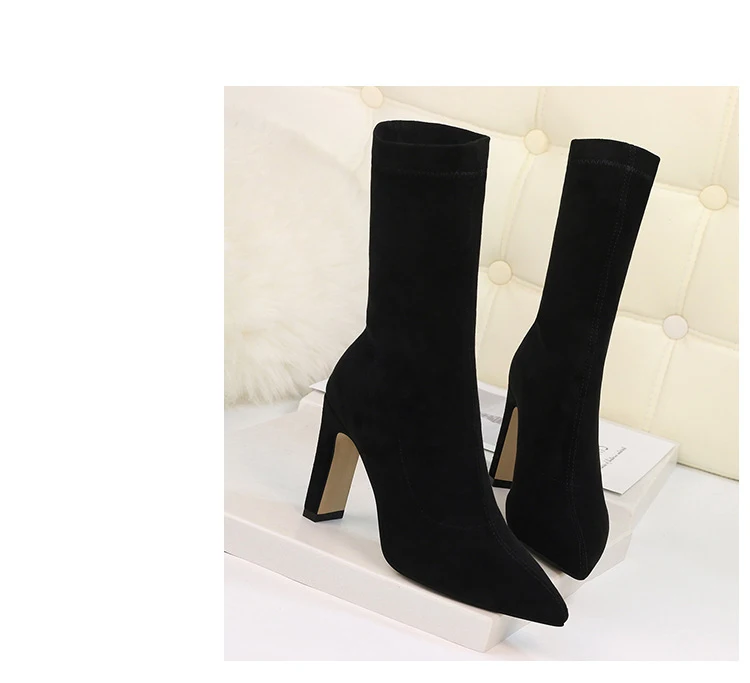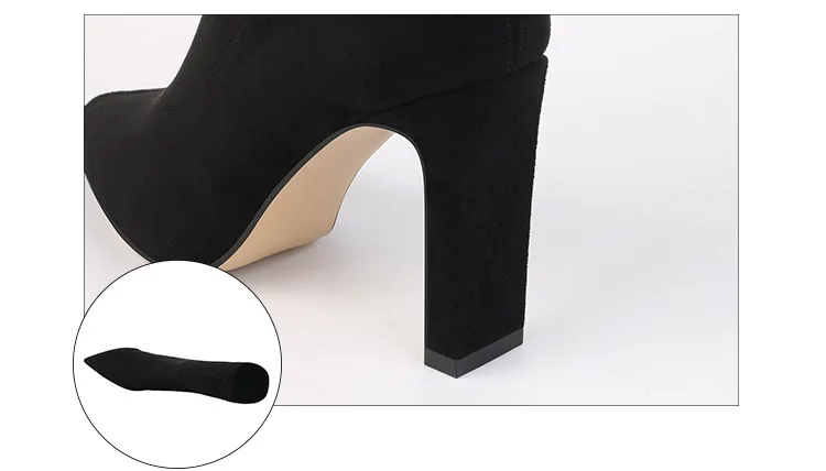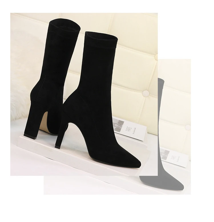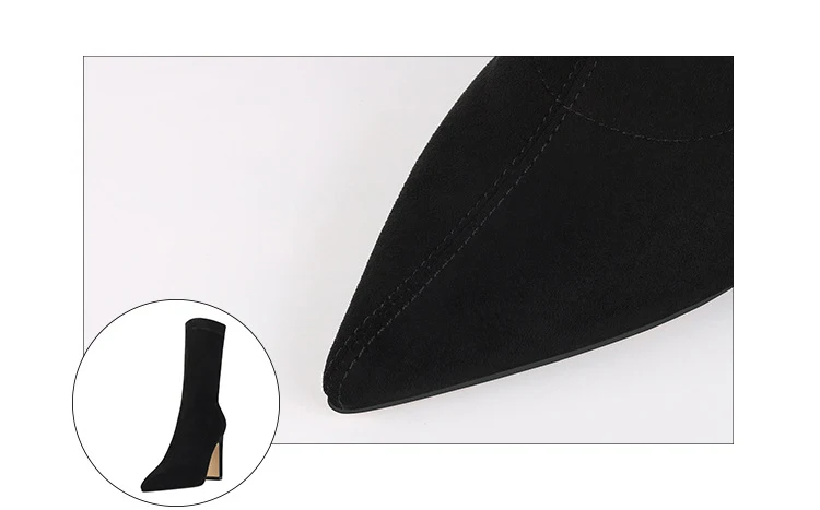 Женские ботинки на высоком каблуке, привлекательные ботинки до середины икры, с острым носком, на толстом каблуке, женские зимние ботинки, женская обувь