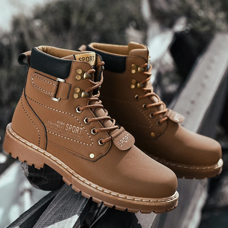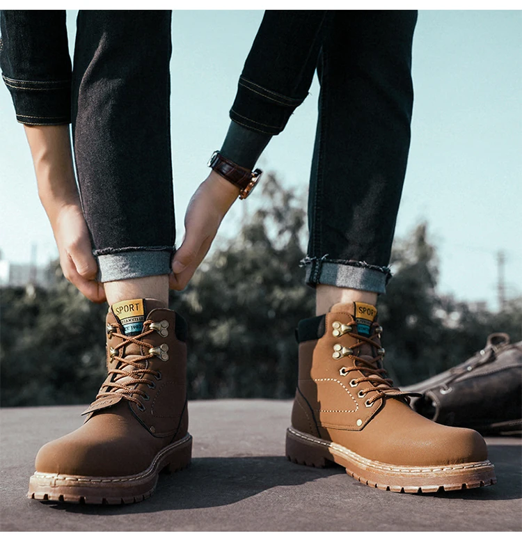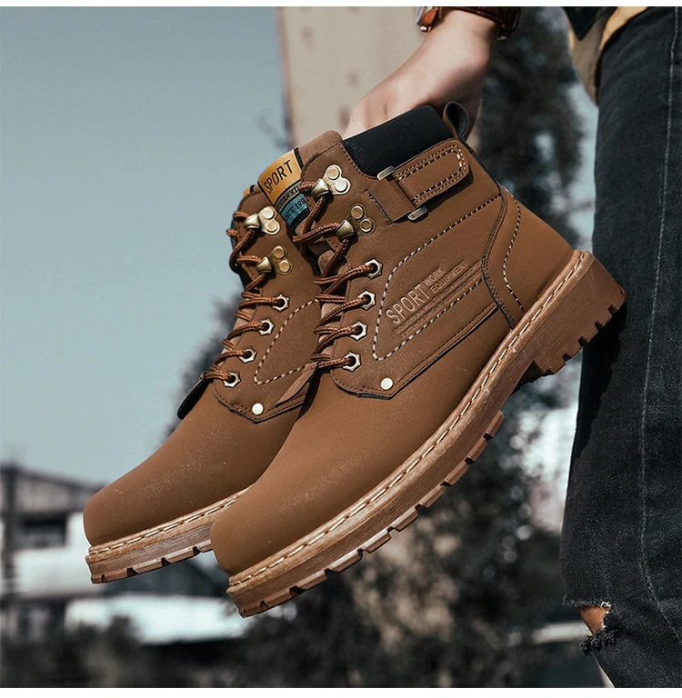 Мужские ботинки до щиколотки, коричневые кожаные ботинки, водонепроницаемые байкерские ботинки, короткие ботинки, Осень-зима 2021