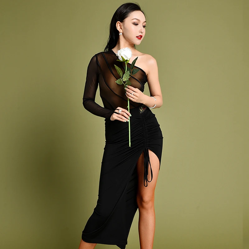 Топ для латины женский сетчатый, пикантный сценический костюм, одежда для бальных танцев, черная юбка, танцевальная одежда, наряд ча-ча JL1522