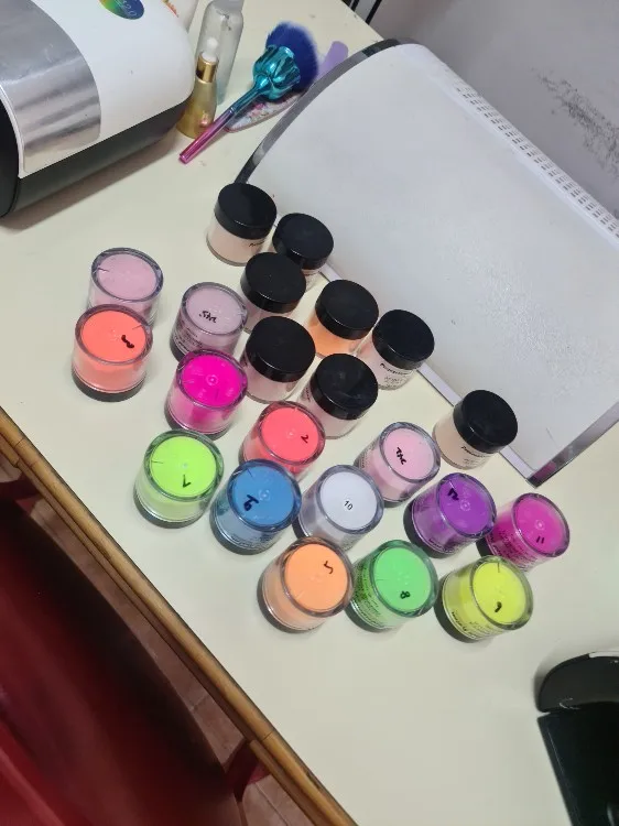 (Я начинающий Нейл-артист) Я практиковался и сначала при использовании акрила с мономера акрил был очень запутанным, я не мог его использовать. Но затем я добавил ацетон в мономер и смешал его, тогда я смог использовать этот акрил очень легко и плавно! Мне нравится! И это действительно выглядит хорошо! Я был взволнован, потому что я смог сделать омбре с цветами 256 и 257. Если вы планируете купить этот продукт, обязательно Смешайте ацетон с вашим мономера, и этот продукт будет хорошо работать для вас и будет очень легко работать с! Вы получаете 10 бутылок акрила по 1 унции. Доставка занимает около месяца.
