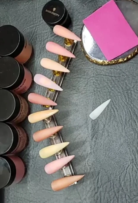 Ожидание три месяца. Спор. Но случилось чудо, заказ нашёлся. Теперь по акрил, заказала на пробу набор из 10 шт. Хотела выбрать какой понравится и в дальнейшем заказать кг. Но увы, нет ни одного цвета, который бы максимально соответствовал цвету ногтевой пластины, прийдется смешивать между собой, а это создаст мраморный эффект, что не очень хорошо. Вообще акрил не самый лучший по качеству. Окрашенный. Кто разбирается поймёт.