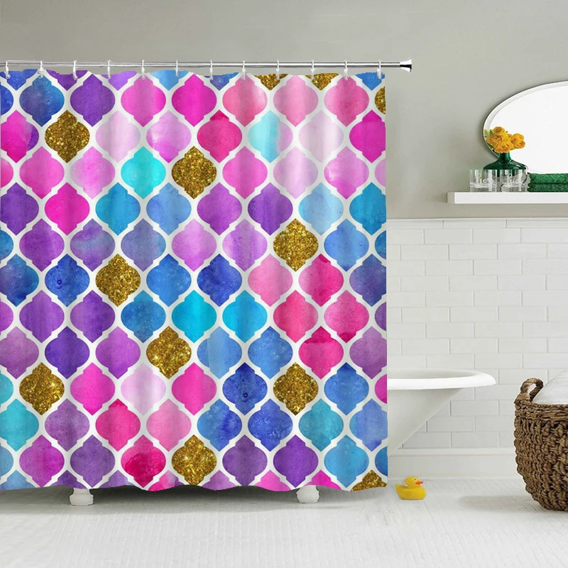 Цветная Геометрическая занавеска для душа 3d занавеска с крючками для ванной комнаты занавеска с крючками декоративная перегородка экран 180*240 полиэстер моющаяся ткань