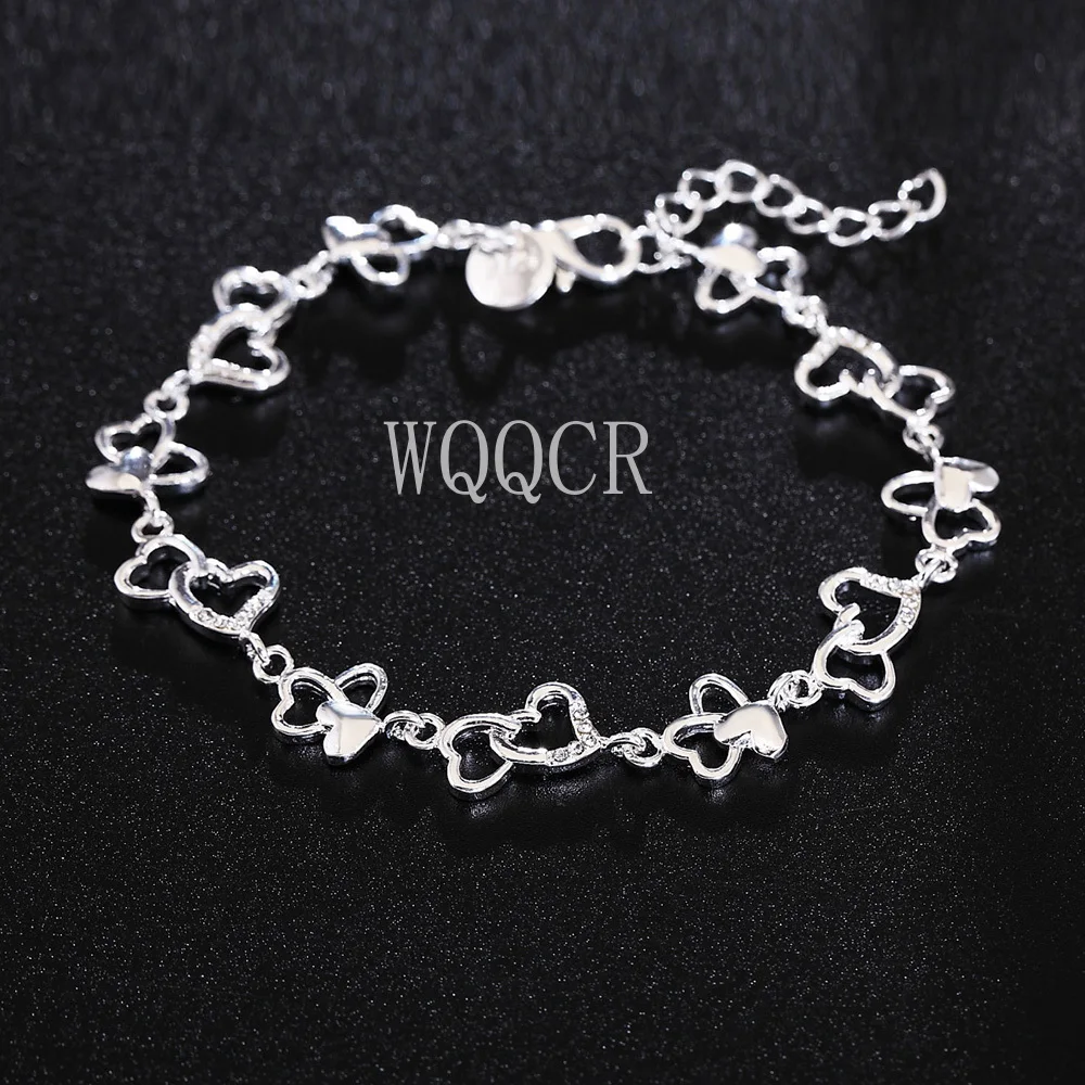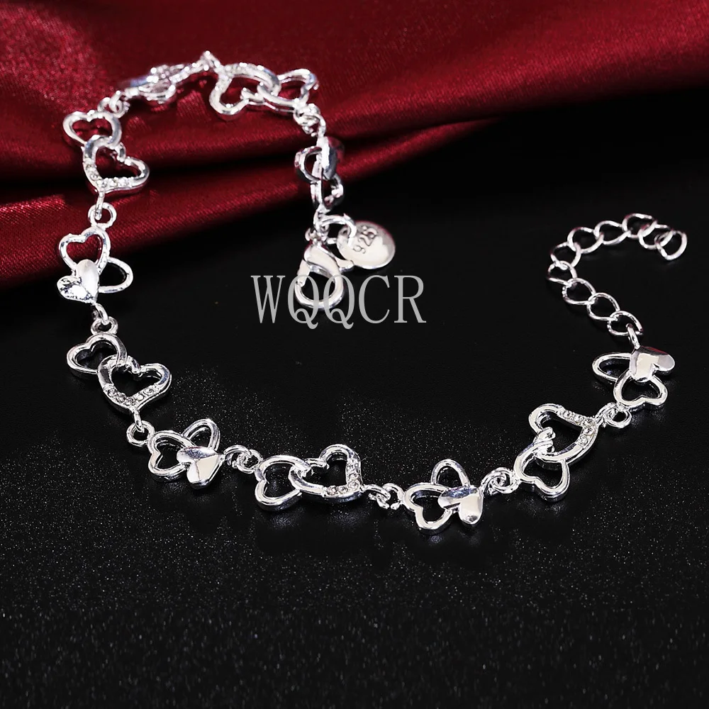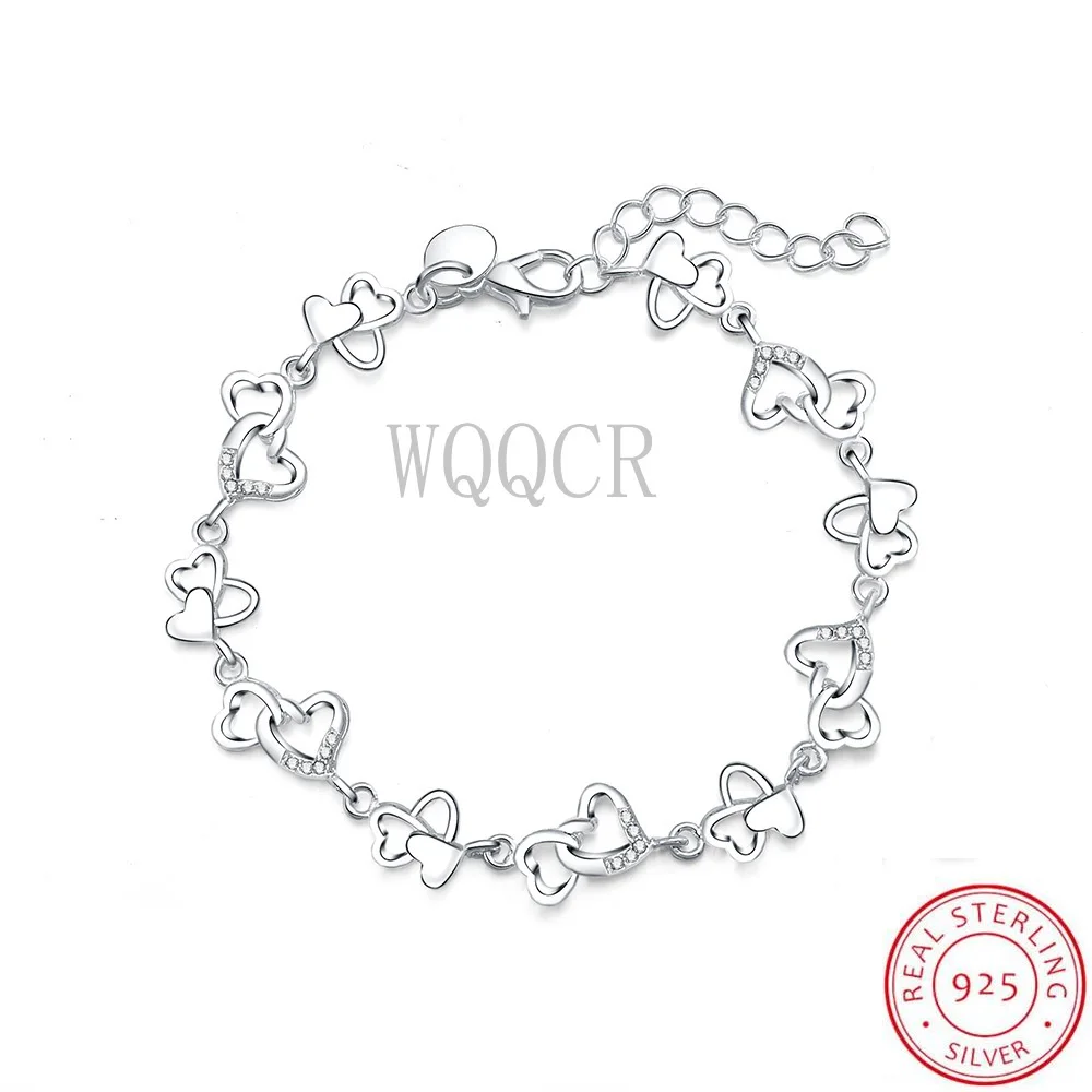 925 Стерлинговое Серебро романтическая двойная Любовь Блестящий кристалл дамы браслет ювелирные изделия не выцветает дамы рождественские подарки