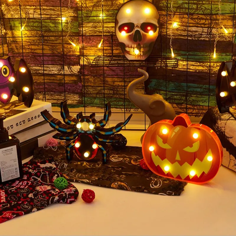 Светодиодная лампа на Хэллоуин, страшная 3D лампа-тыква, призрак, скелеты, летучая мышь, паук, фестиваль, бар, домашнее украшение для вечеринки, Хэллоуина, Дом ужасов