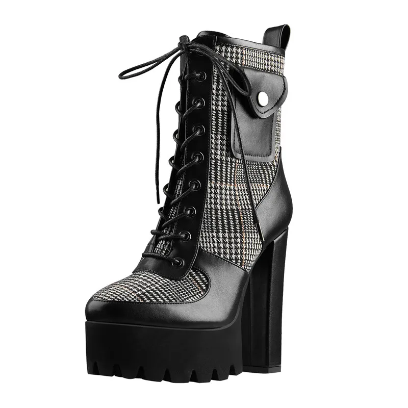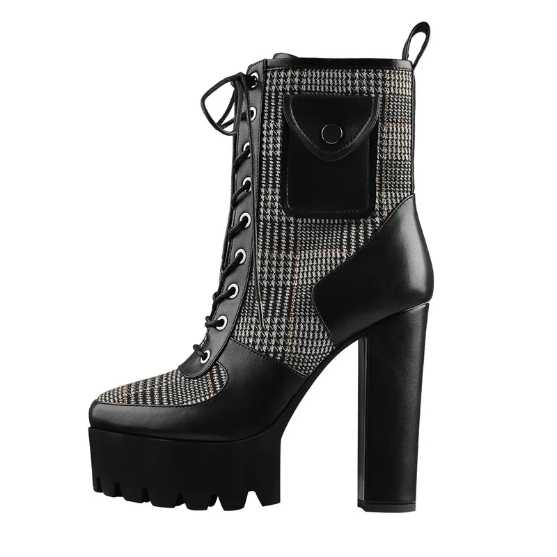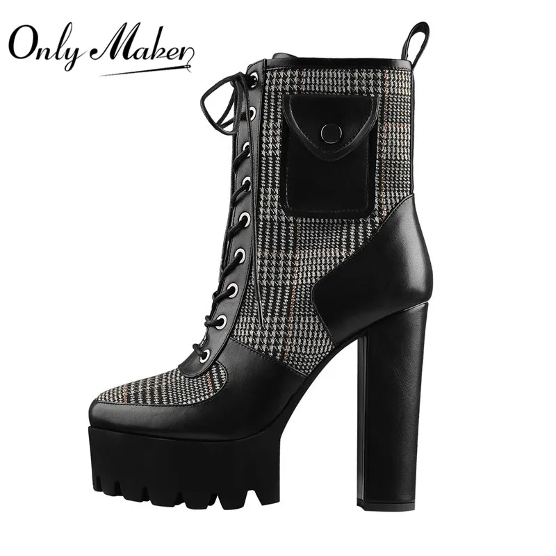 Onlymakerженские ботинки на платформе с круглым каблуком, на шнуровке, на высоком массивном каблуке, обувь для вечеринок, полусапожки больших размеров