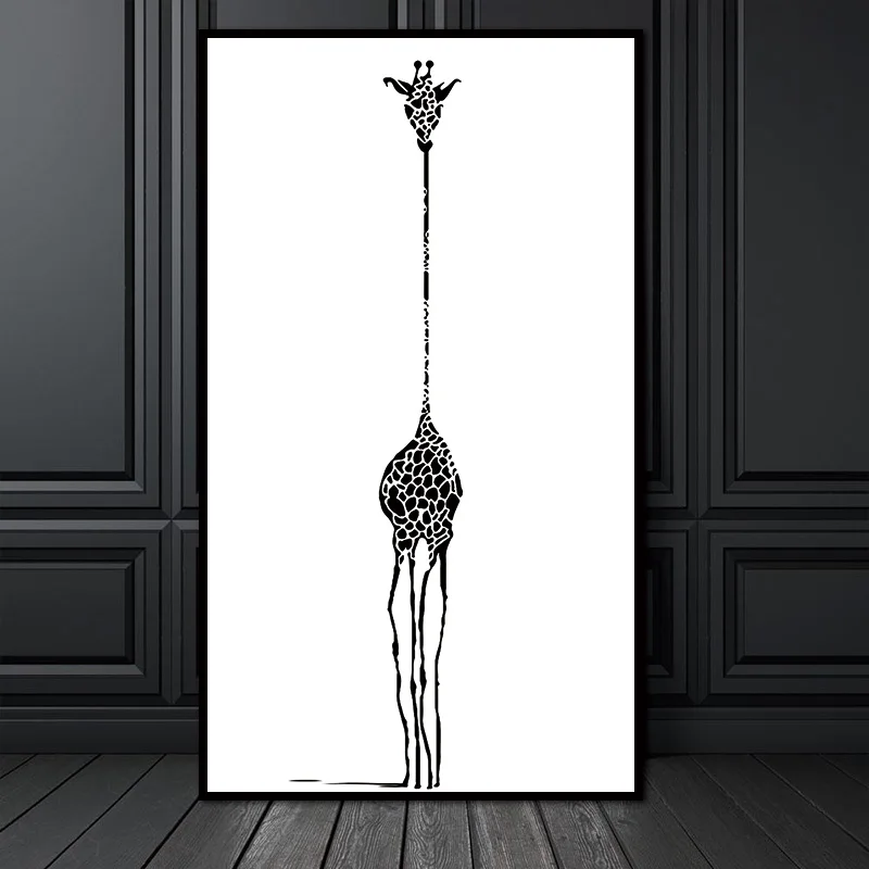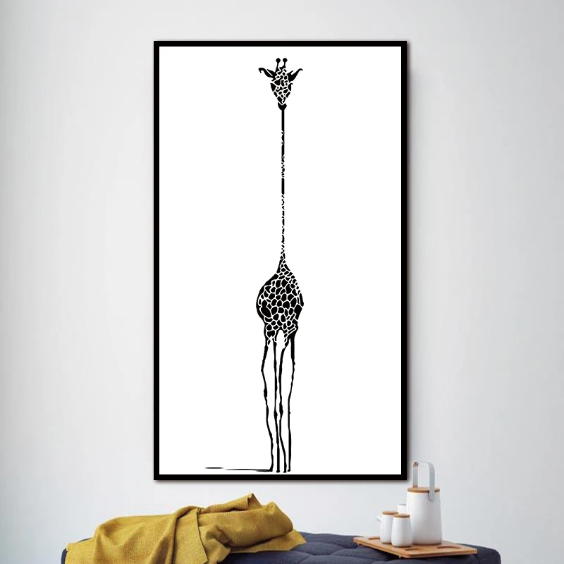 Абстрактная черно-белая Картина на холсте Жираф картины без рамки нордический минималистичный рисунок животных в стиле поп-арт постер Декор