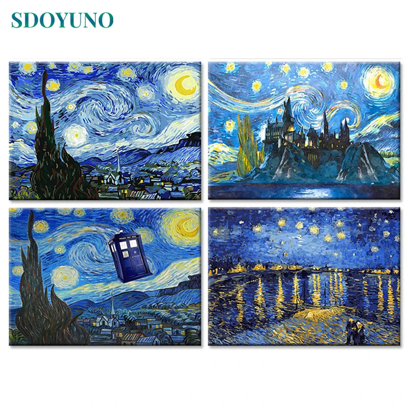 SDOYUNO Van Gogh краска по номерам деревьев 60x75 см масляная краск...