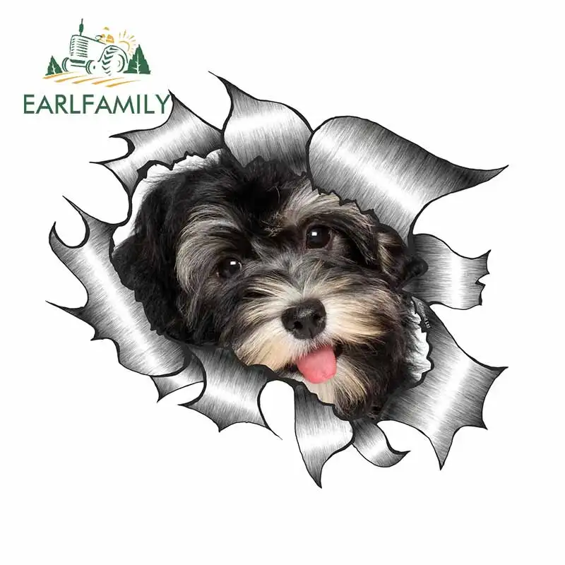 EARLFAMILY 13 см x 11,8 см рваный металлический Рип-дизайн с красивым хаванским ПЭТ Собака Щенок мотив внешняя виниловая Автомобильная наклейка