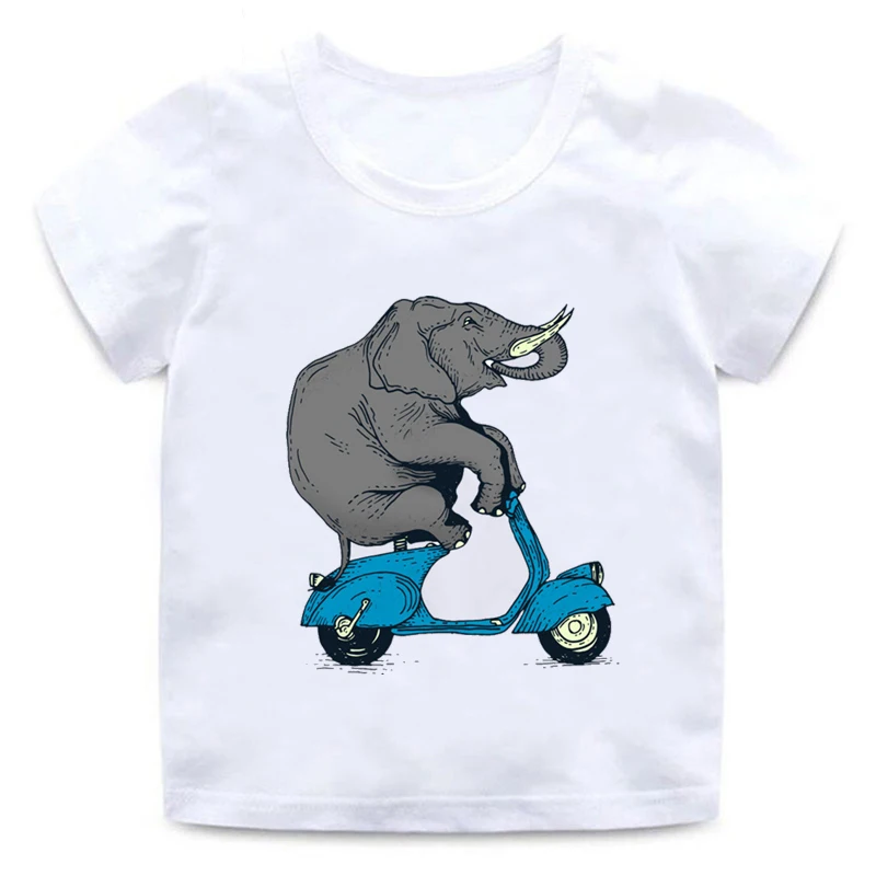 Детская футболка с изображением милого слона для верховой езды, 3D рубашка с изображением слона, мягкая хлопковая Повседневная футболка с круглым вырезом для мальчиков и девочек