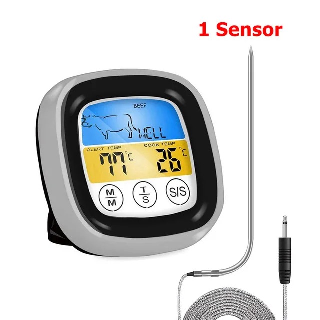 Цифровой Кухонный Термометр с таймером, прибор для измерения температуры, для барбекю, духовки, мяса и гриля, сигнал при превышении температуры
