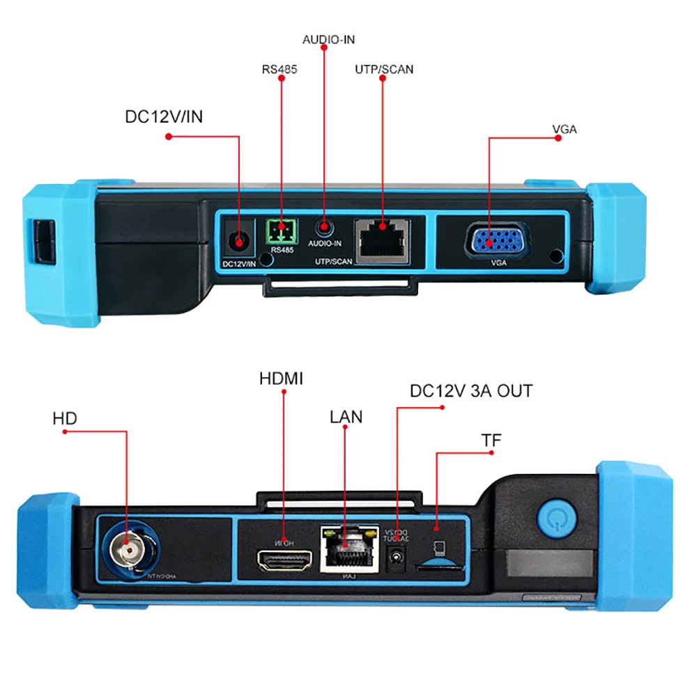 ● 5 дюймовый IPS сенсорный экран с 1920x1080 Разрешение ● H.265/H.264, 4K видео-дисплей через основной ● вход VGA, поддержка 2048x1152 60FPS * ● HDMI вход переменного тока, поддержка 4K 30FPS * ● DC12V 3A, 48V PoE выходная мощность ● Быстрый ONVIF, создание тестового отчета и изменение ip-адреса и т. д. ● Авто HD, Автоматическое распознавание HD тип и разрешение коаксиальной камеры ● тест кабеля RJ45 TDR, тест качества кабеля ● тест кабеля UTP, обнаружение ближнего конца, середина и дальняя точка неисправности кристаллической головки сетевого кабеля