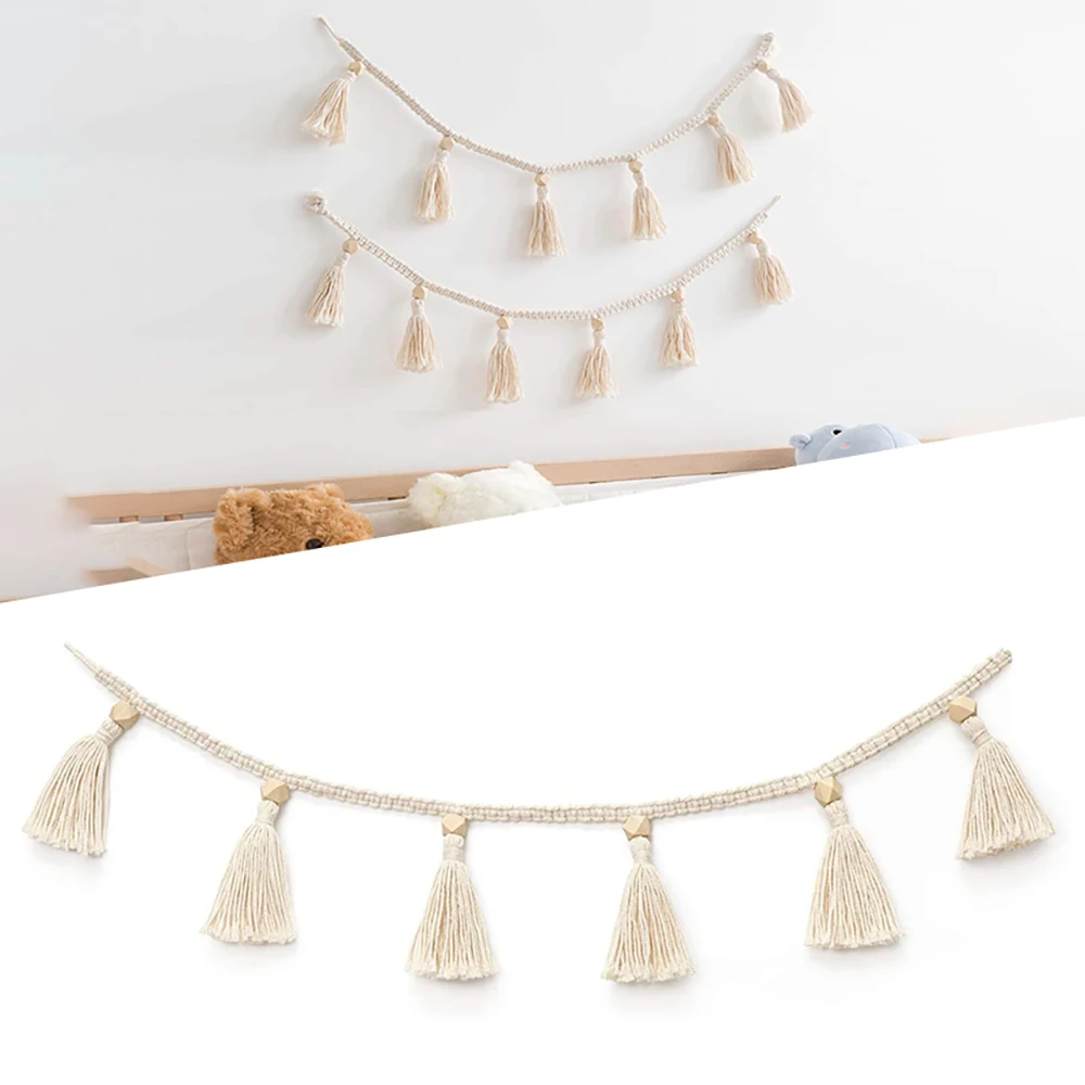 70 см богемное макраме ручной работы плетеная гирлянда с кисточками с деревянными бусинами корзина для живота декоративное настенное украшение сделай сам для дома