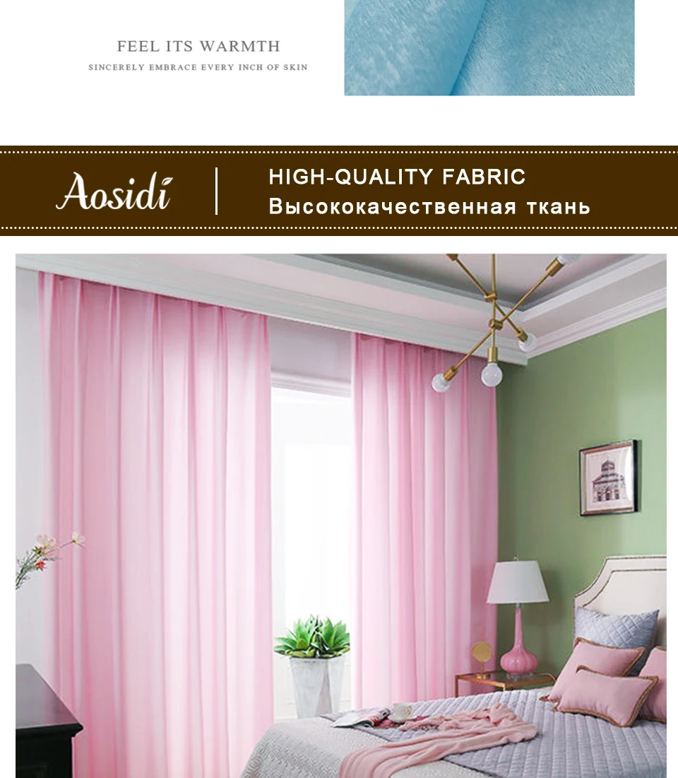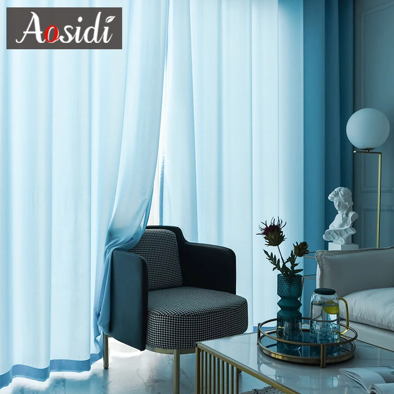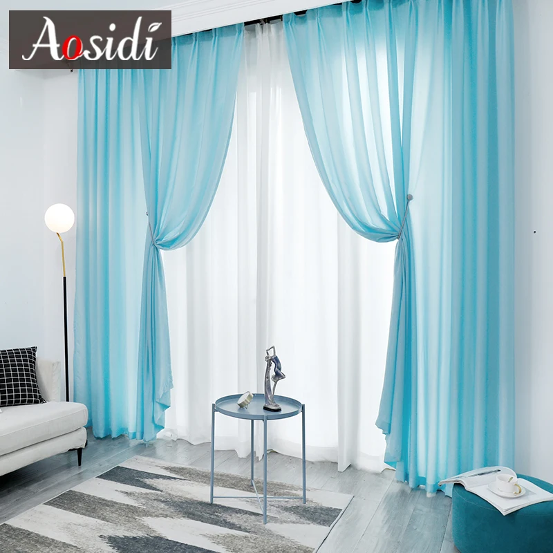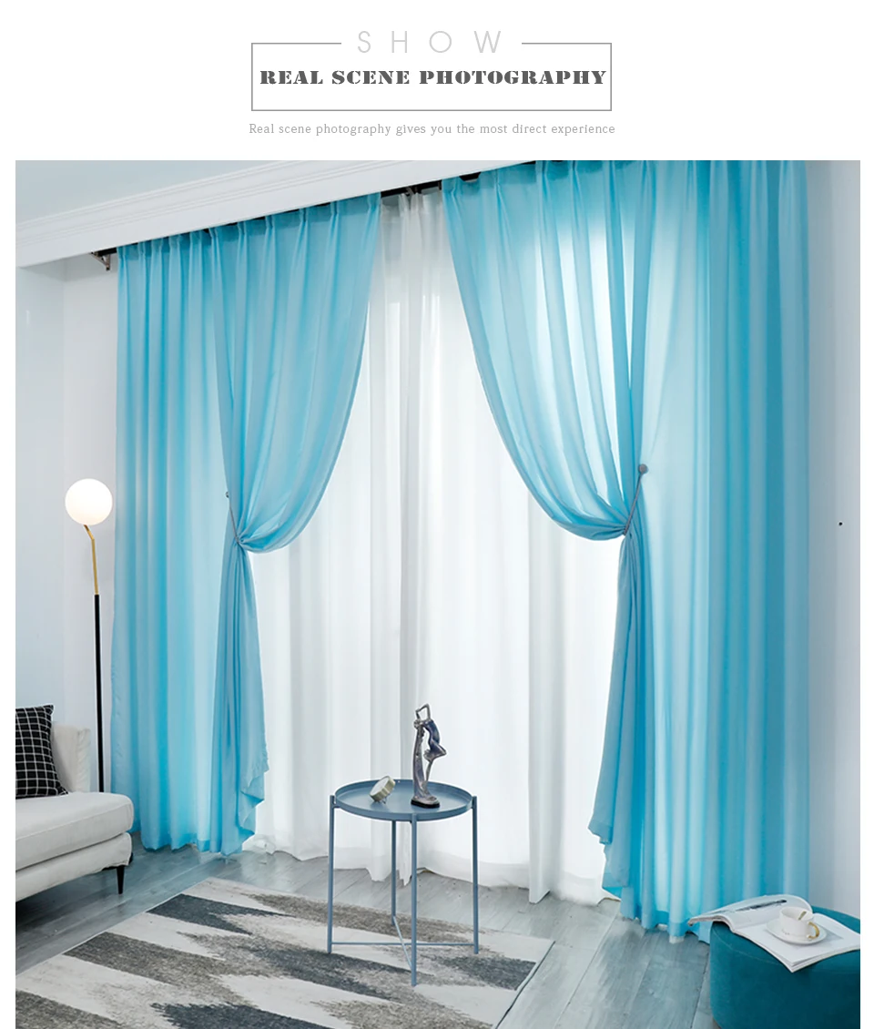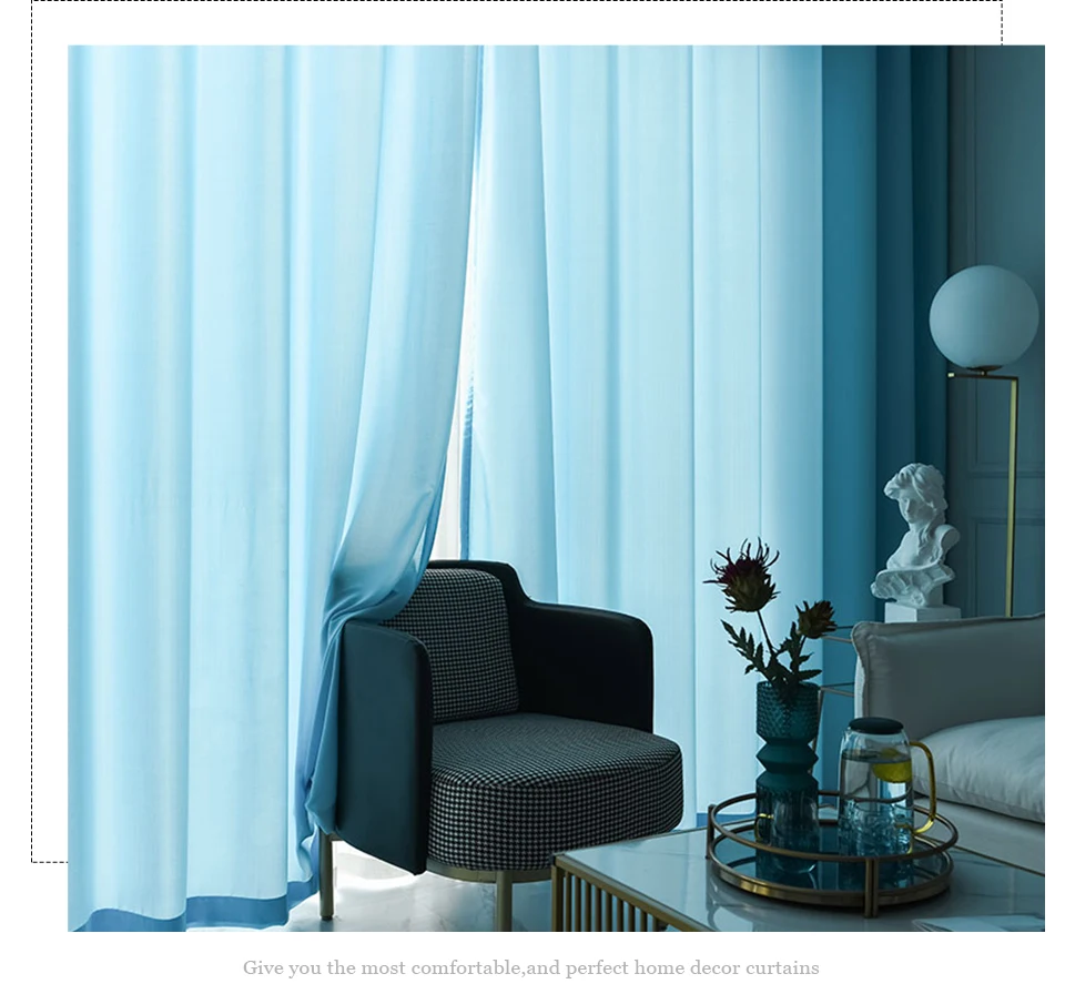 Thick Blue Semi Sheer Tulle Curtains for Living Room Window Treament Bedroom Solid Soft Crushed Voile Curtains Drapes Cortina