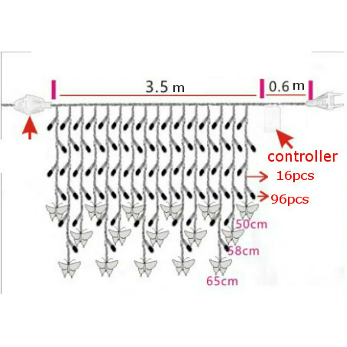 16 бабочка светодиодный занавес рождественские Guirlande праздничное освещение светодиодный гирлянда сказочные огни Luces Decorativas De Navidad