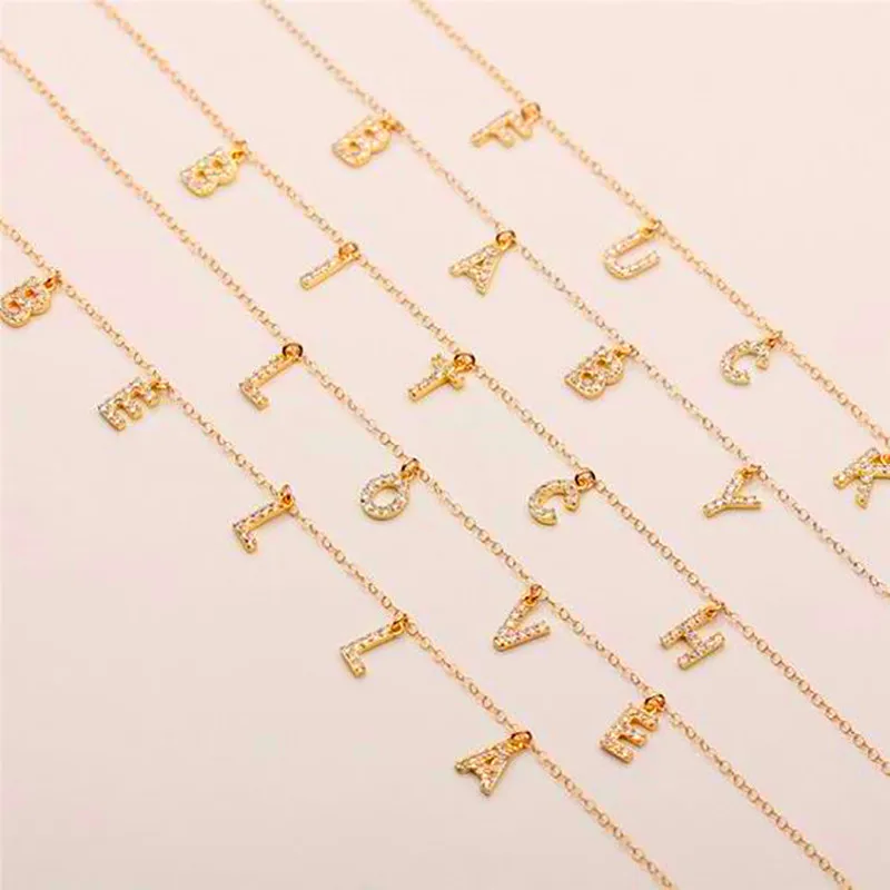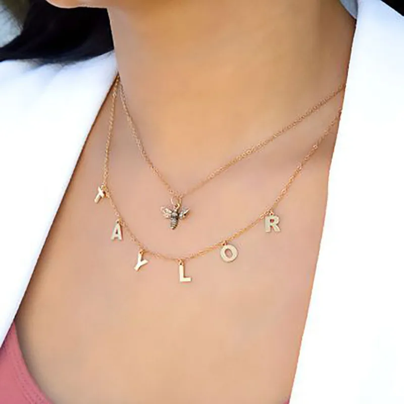 Ожерелье с именем на заказ из нержавеющей стали, чокер с буквами из кристаллов кулон-табличка с именем для женщин и девочек, ювелирные изделия, подарок