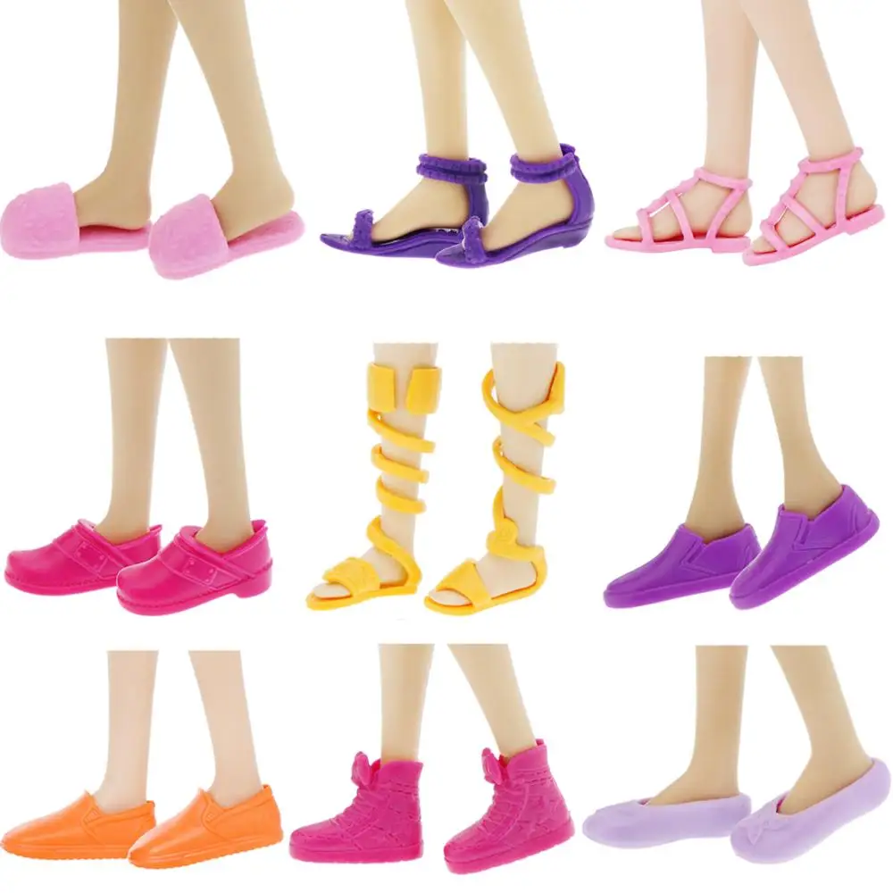 10 пар босоножек на плоской подошве обувь на высоком каблуке разноцветная обувь на платформе для куклы Барби 12 дюймов аксессуары для игрушек