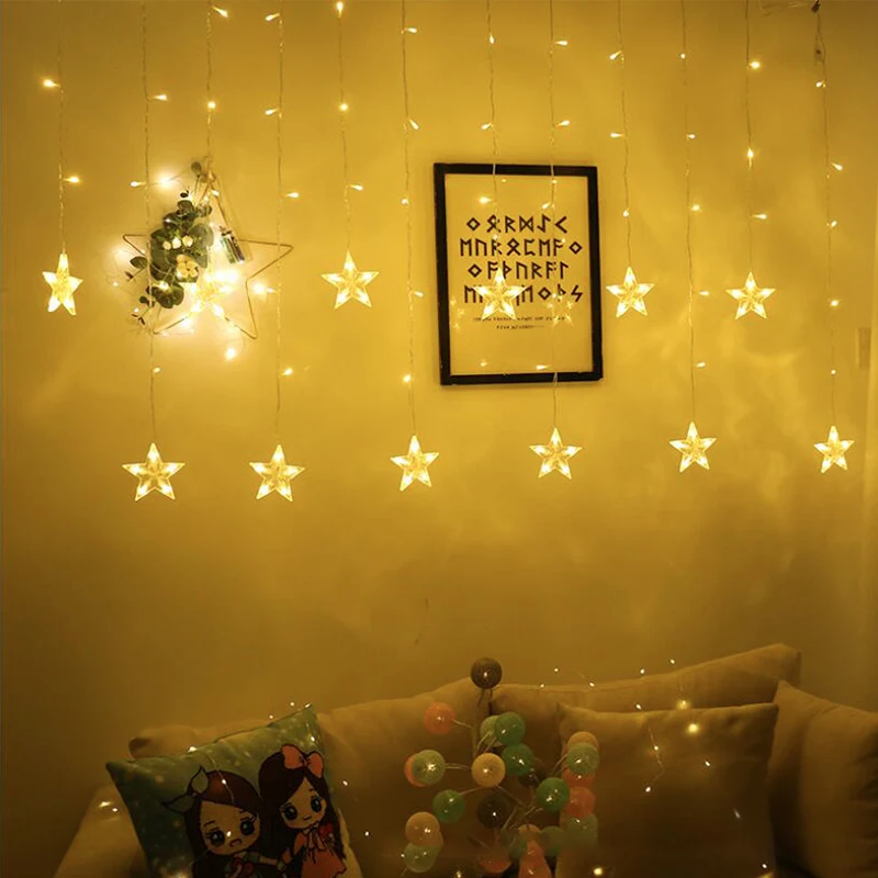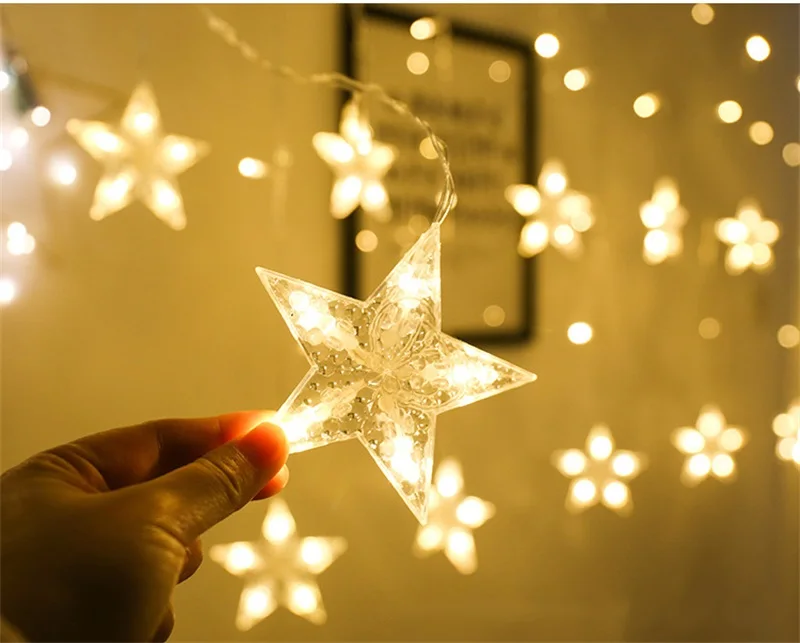 СВЕТОДИОДНАЯ Гирлянда-занавеска со звездами, 2,5 м, 220 В