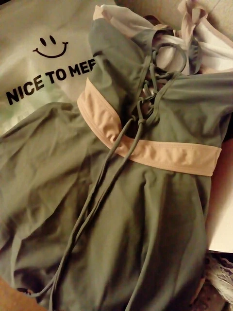 Пикантный слитный купальник со шнуровкой, Женский однотонный купаль...