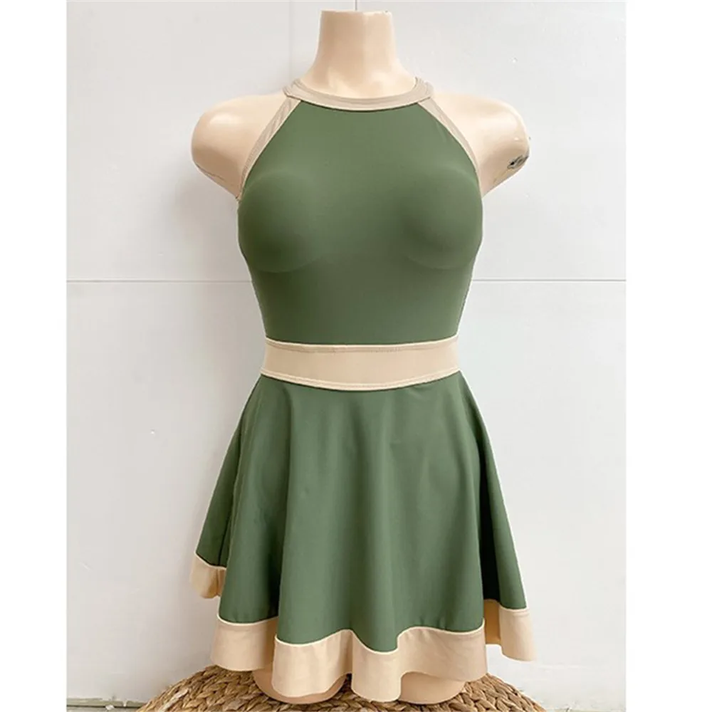 Купальник слитный в Корейском стиле с юбкой, Женский однотонный куп...